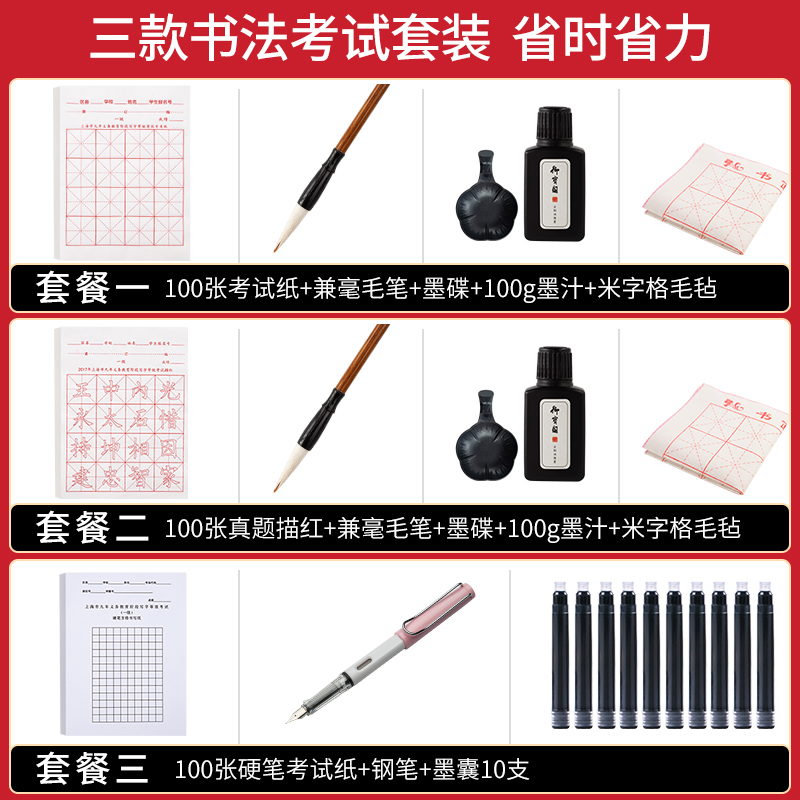 上海市九年义务教育书法考试专用纸阶段写字等级宣纸半生熟米字格5cm小学生考级描红书法软笔纸 毛笔字练习纸