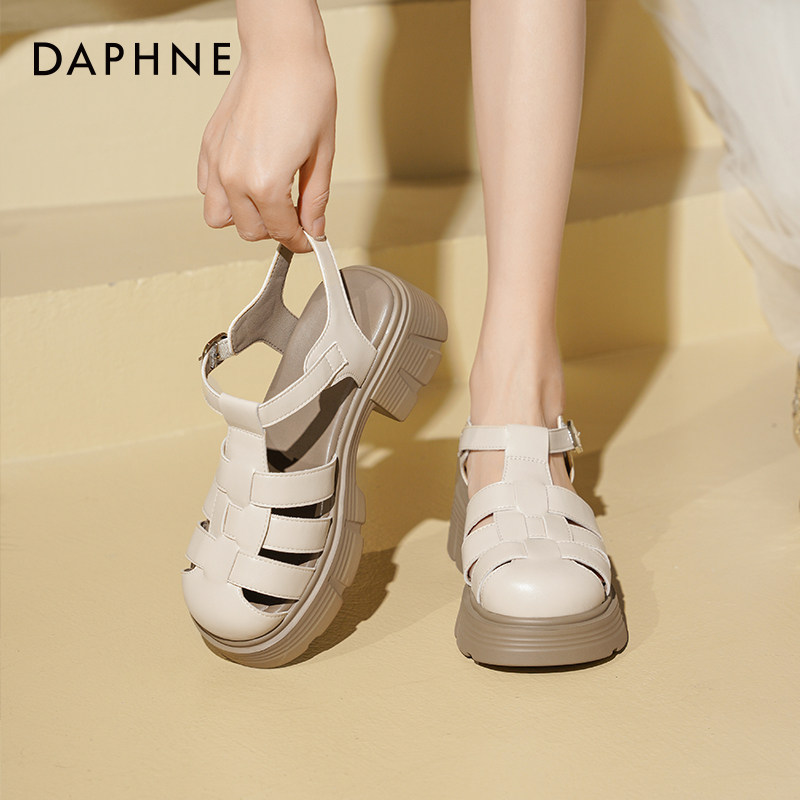 达芙妮厚底凉鞋女2025新款夏季搭扣沙滩鞋时尚包头编织罗马凉鞋子