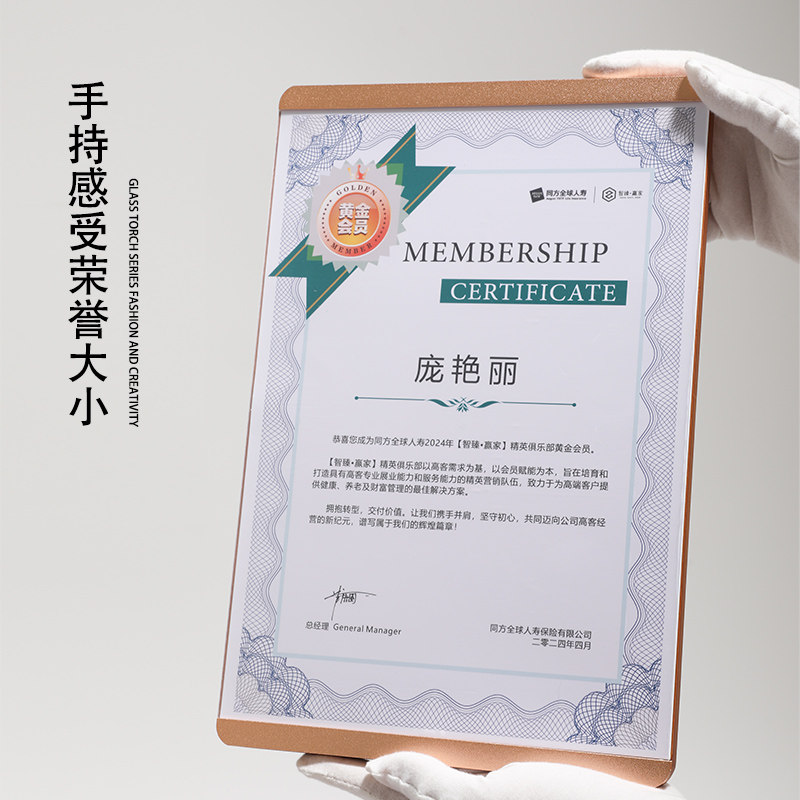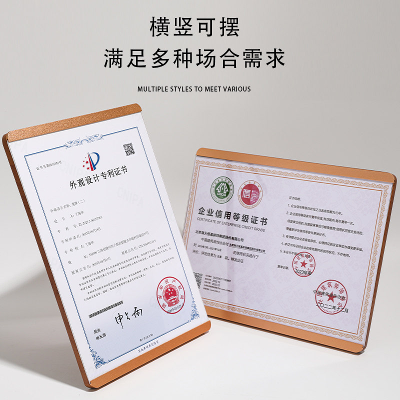 高档亚克力奖牌实木金属牌奖状荣誉证书A4可替换专利授权裱框获奖相框摆台定制奖牌经销商合作牌