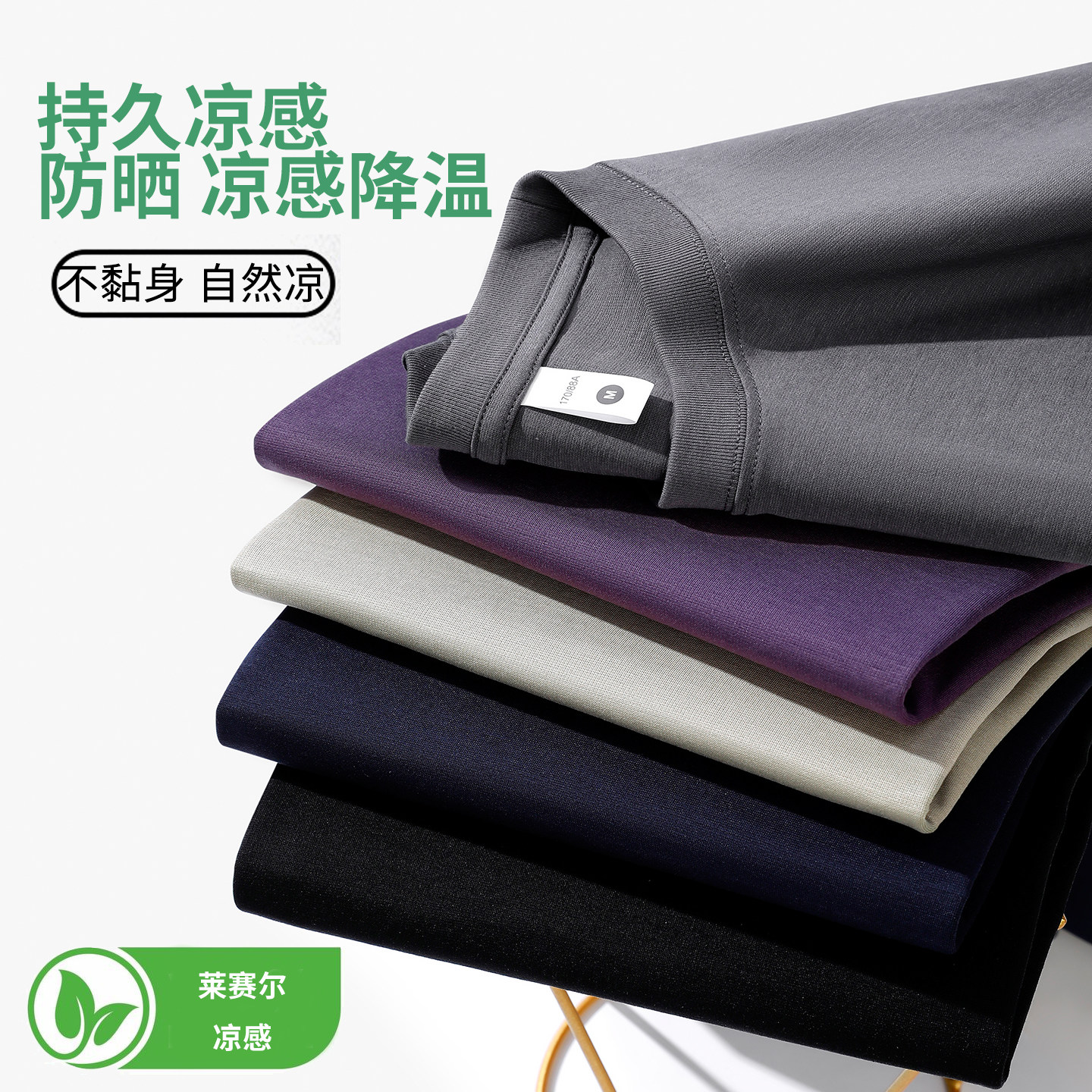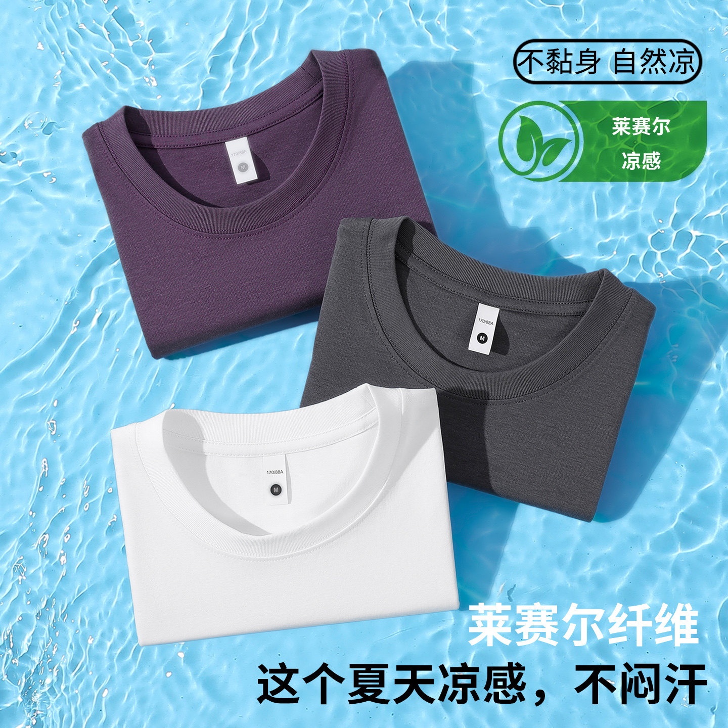 莱赛尔天丝休闲短袖T恤男士夏季冰丝宽松半袖体恤衫纯色圆领上衣