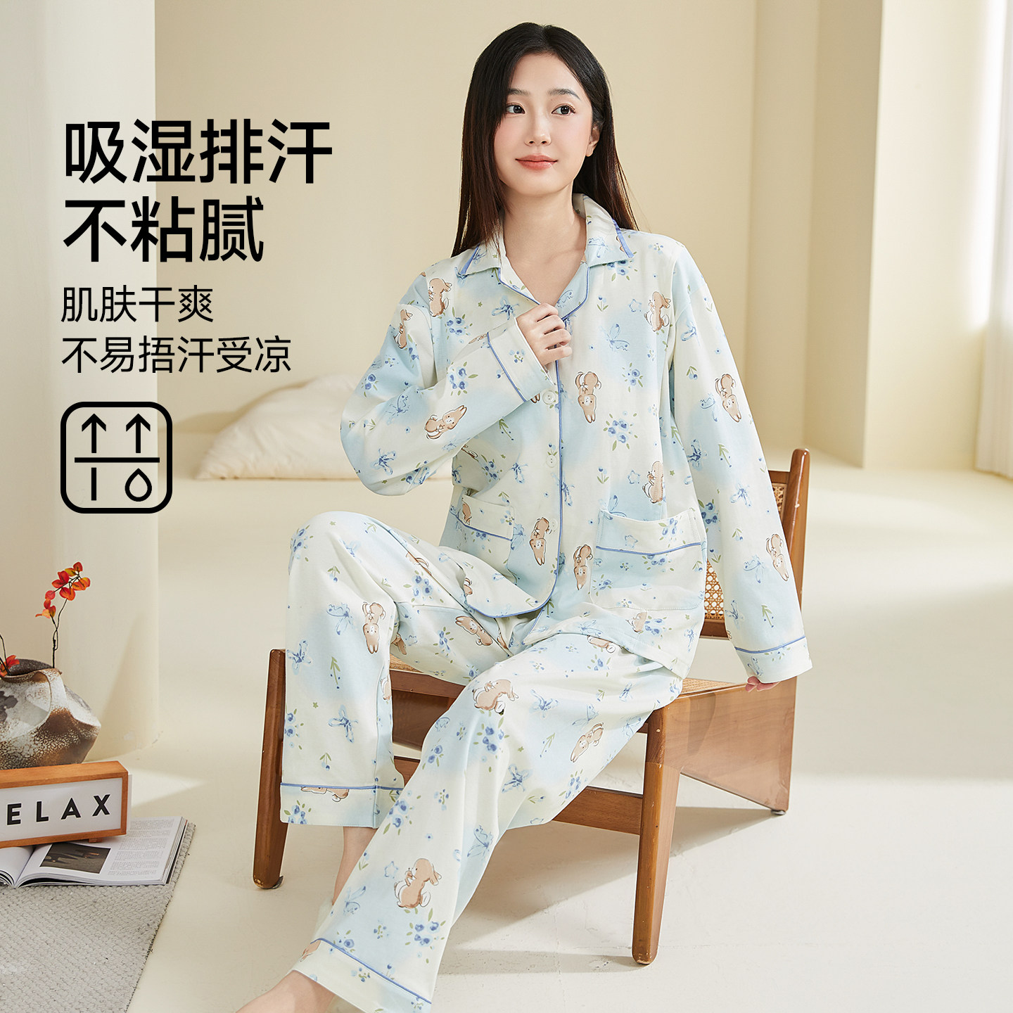 浪莎睡衣女款春秋季2025新款抗菌纯棉布料100%全棉长袖家居服套装