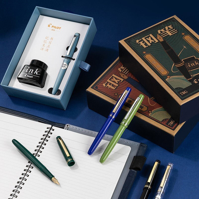 【自营】PILOT/百乐78G+钢笔限定礼盒套装学生练字书写专用墨水笔可替换墨囊成人送礼高档墨水复古铱金笔礼盒