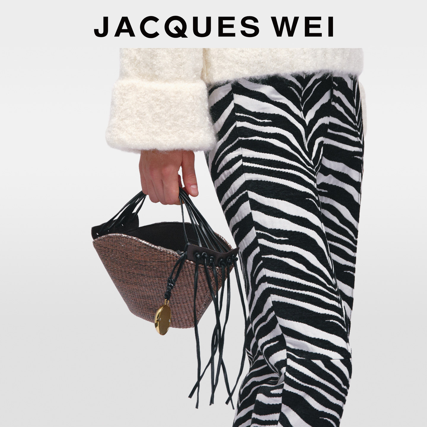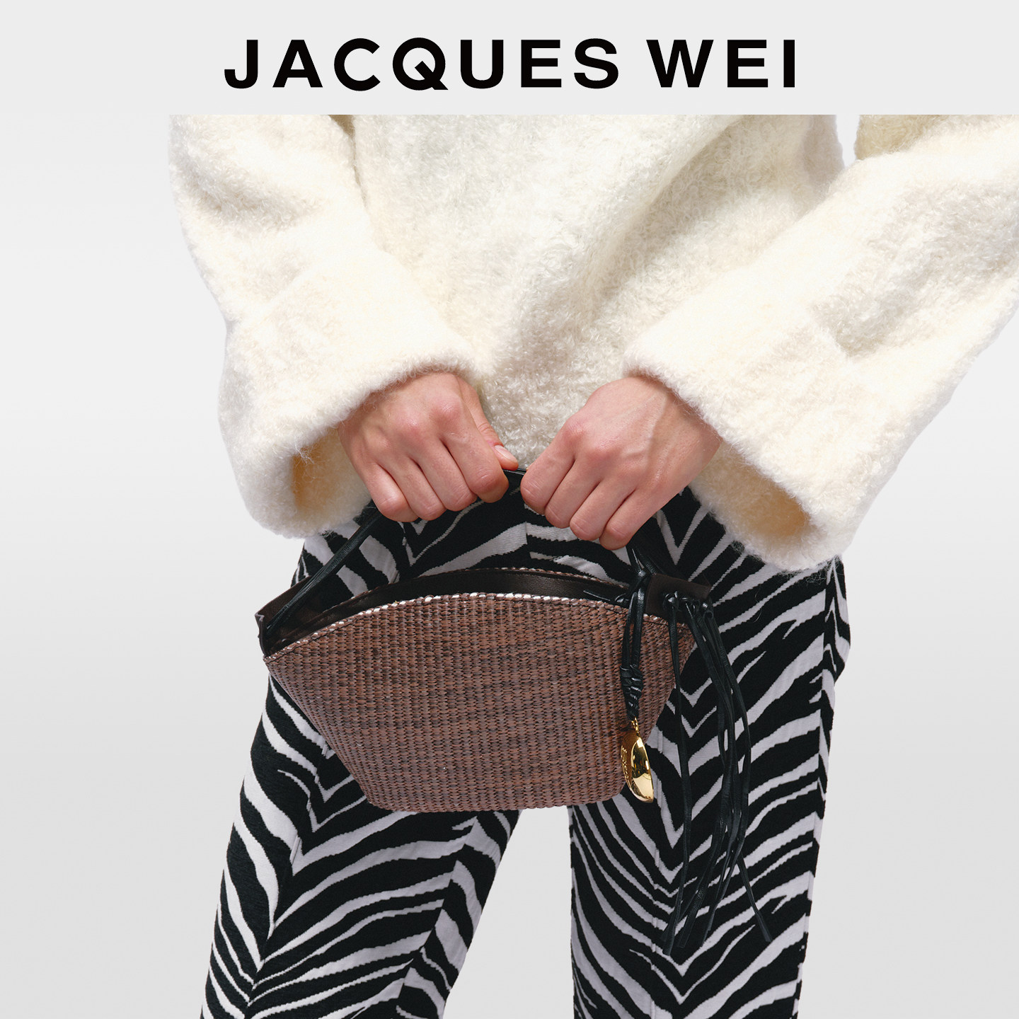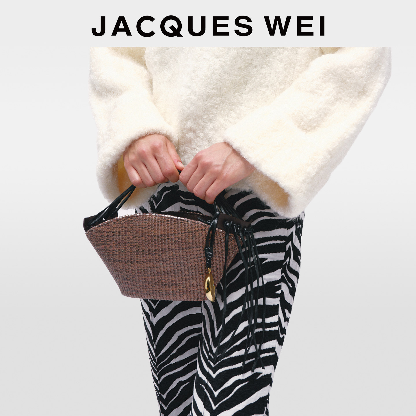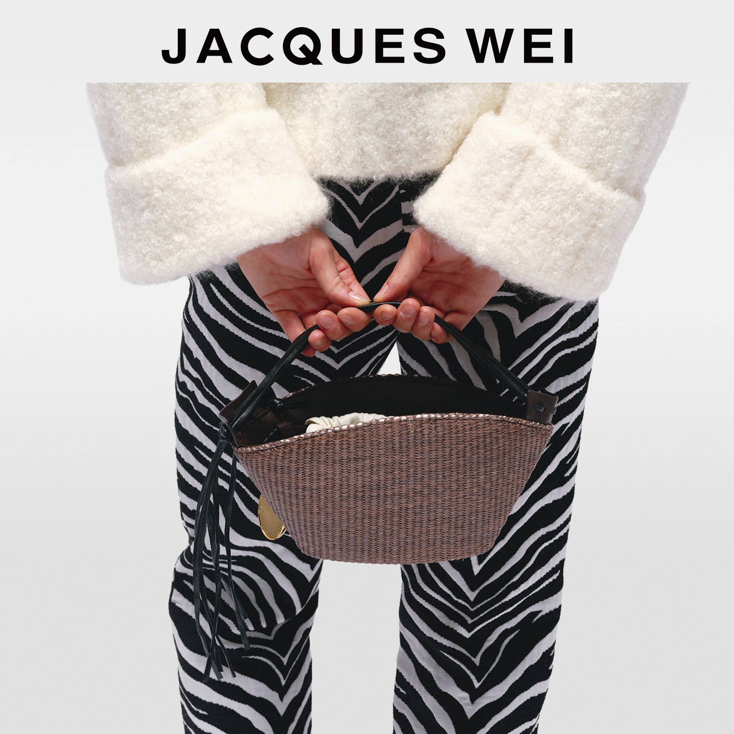 JACQUES WEI2025年新款棕色真皮流苏草编包女款小巧化妆包手拿包