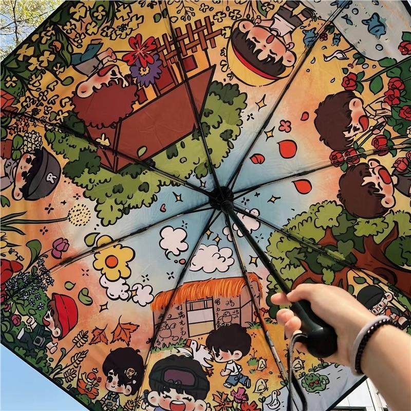 十个勤天周边雨伞种地吧做大做强晴雨两用八骨黑胶伞防紫外线晴天