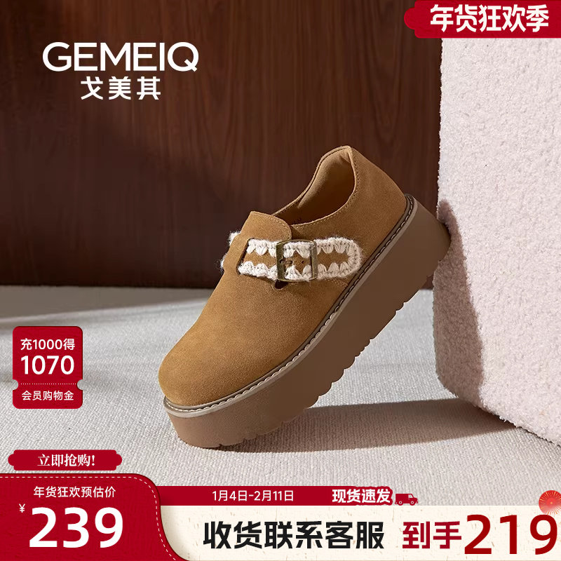 戈美其商场同款真皮乐福鞋女2025新款松糕厚底增高懒人勃肯鞋全包