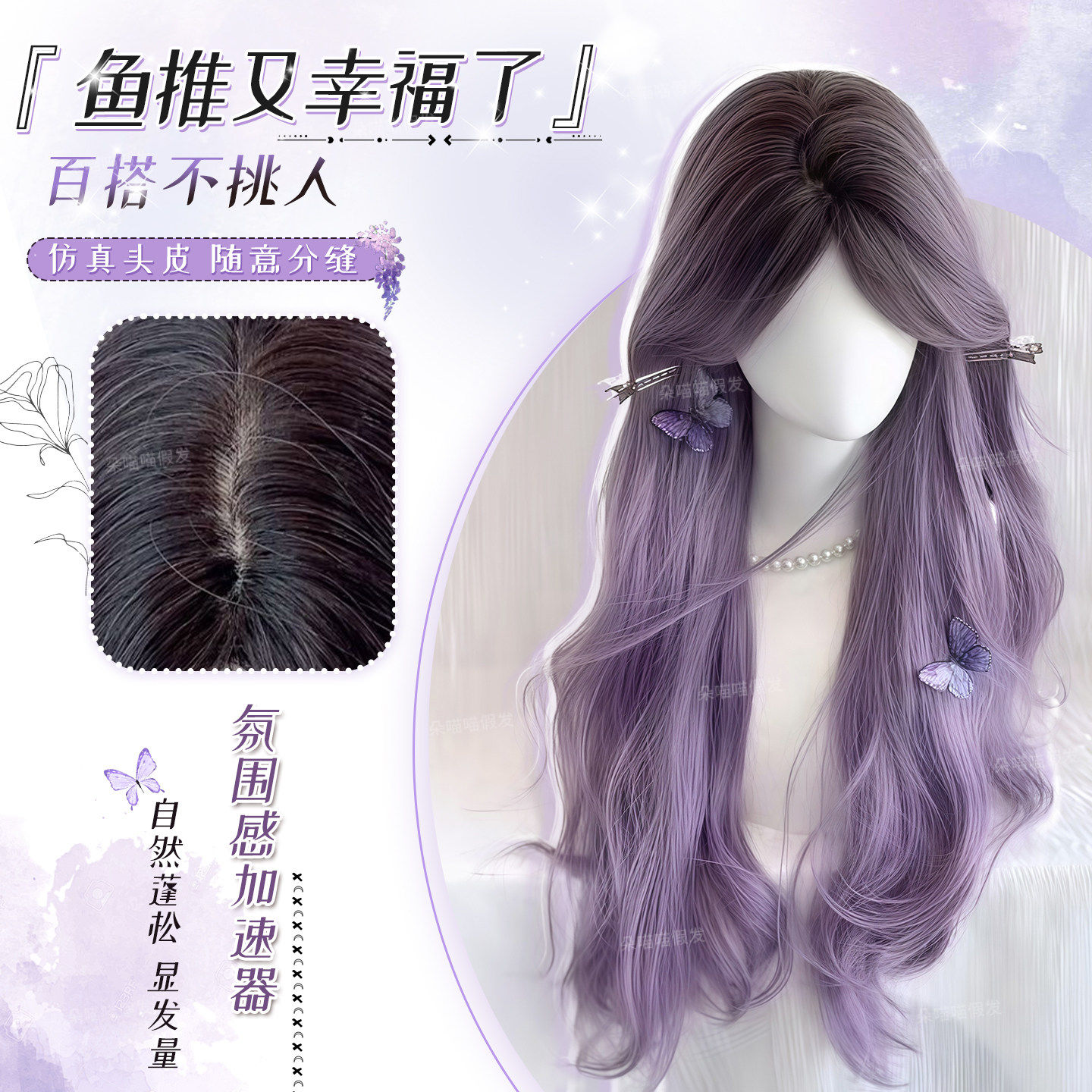 【祁煜发色】假发女长发演唱会灰紫色渐变中分长卷发情侣发全头套