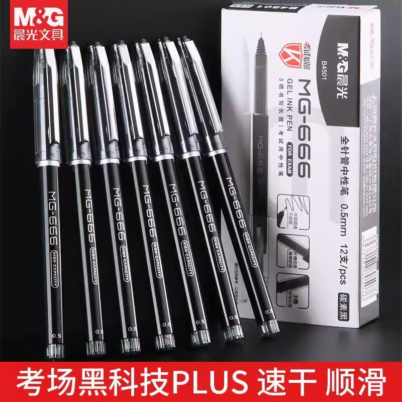 晨光中性笔学生考试专用大容量笔芯0.5碳素黑色水笔黑科技中考高考必备B4501顺滑全针管速干MG4196替芯
