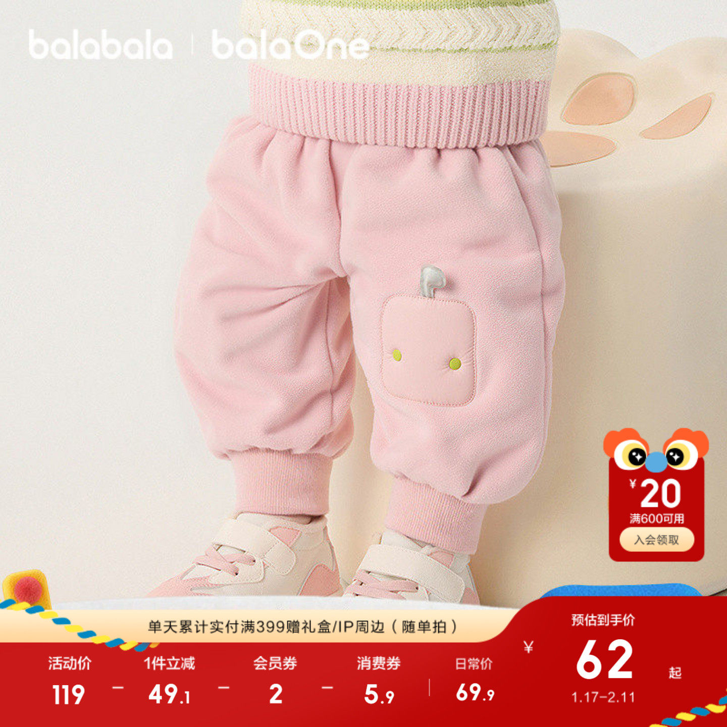 巴拉巴拉balaOne宝宝打底裤加绒保暖长裤冬女童男童裤子2025新款
