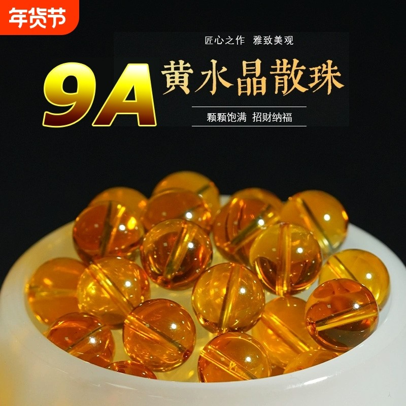 收藏级黄水晶柠檬黄水晶散珠巴西暴力男女配珠圆珠子招财手串冰种
