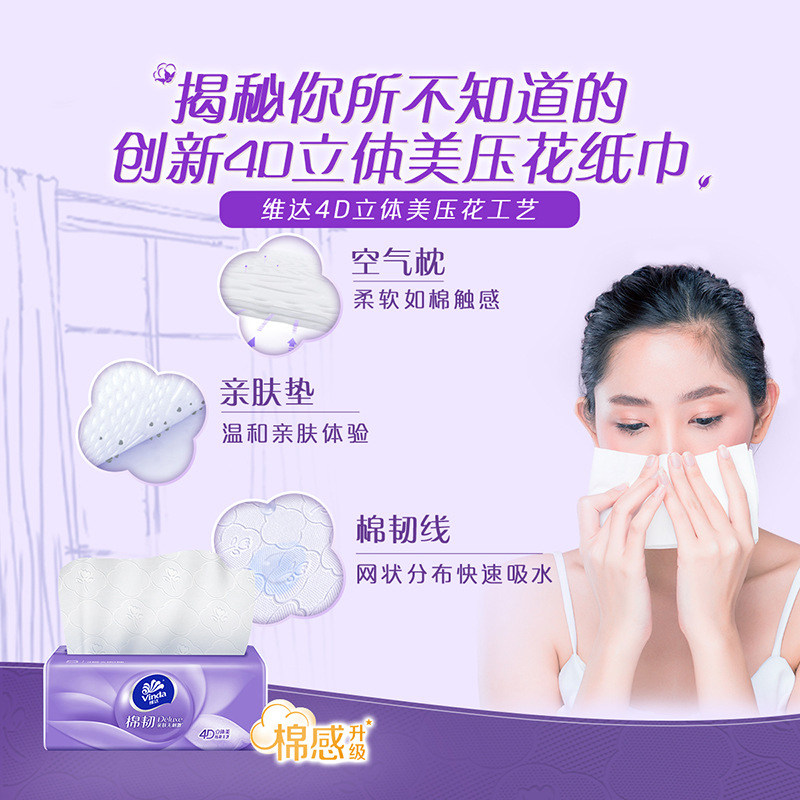 【进直播间】维达棉韧抽纸3层卫生纸巾实惠装餐巾纸面巾整箱家用