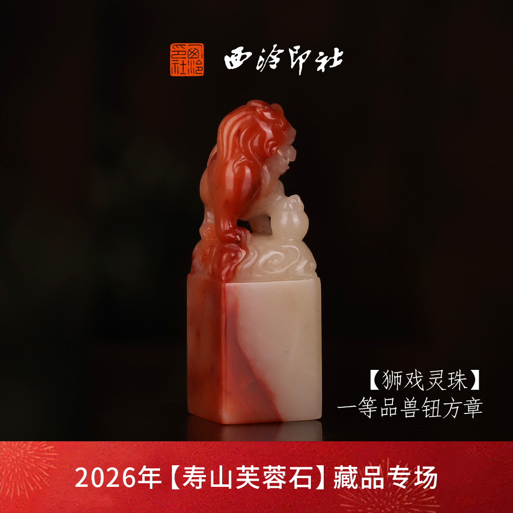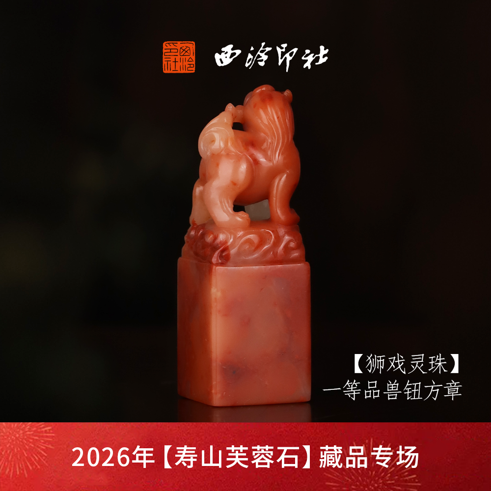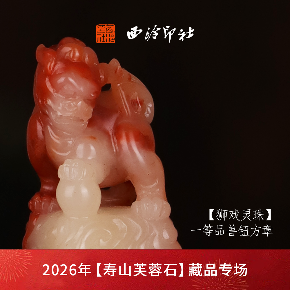 【一等品】西泠印社寿山芙蓉石兽钮方章《狮戏灵珠》高档石材印章书法国画手工篆刻玉石方章定制落款孤品章