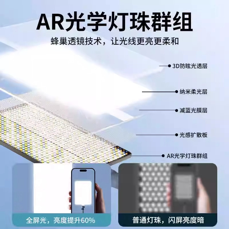 直播补光灯主播专用摄影拍摄打光拍照led直播间专业美食灯光柔光美颜拍视频桌面珠宝室内影棚方形平板灯顶灯