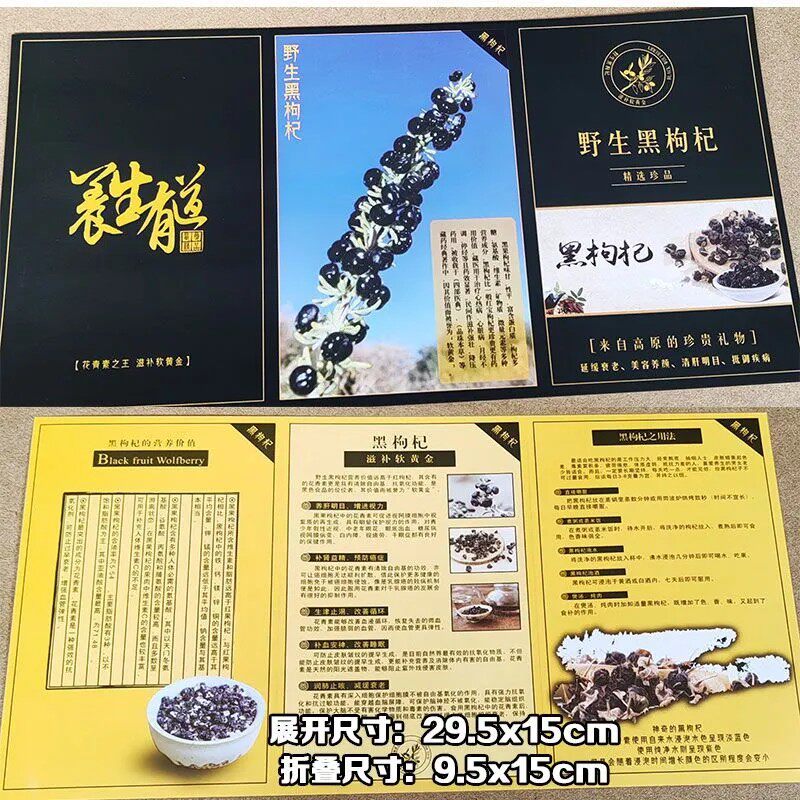 现货批发黑枸杞小广告宣传卡片高档说明书双面印刷三折页四折页