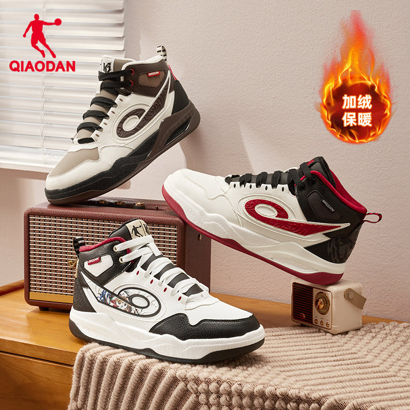 乔丹传奇加绒红色新年高帮板鞋男2025冬季新款保暖休闲增高滑板鞋
