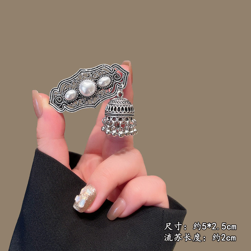 民族风流苏bb夹重工发夹女高级感水晶碎发夹发卡发饰水钻串珠铃铛