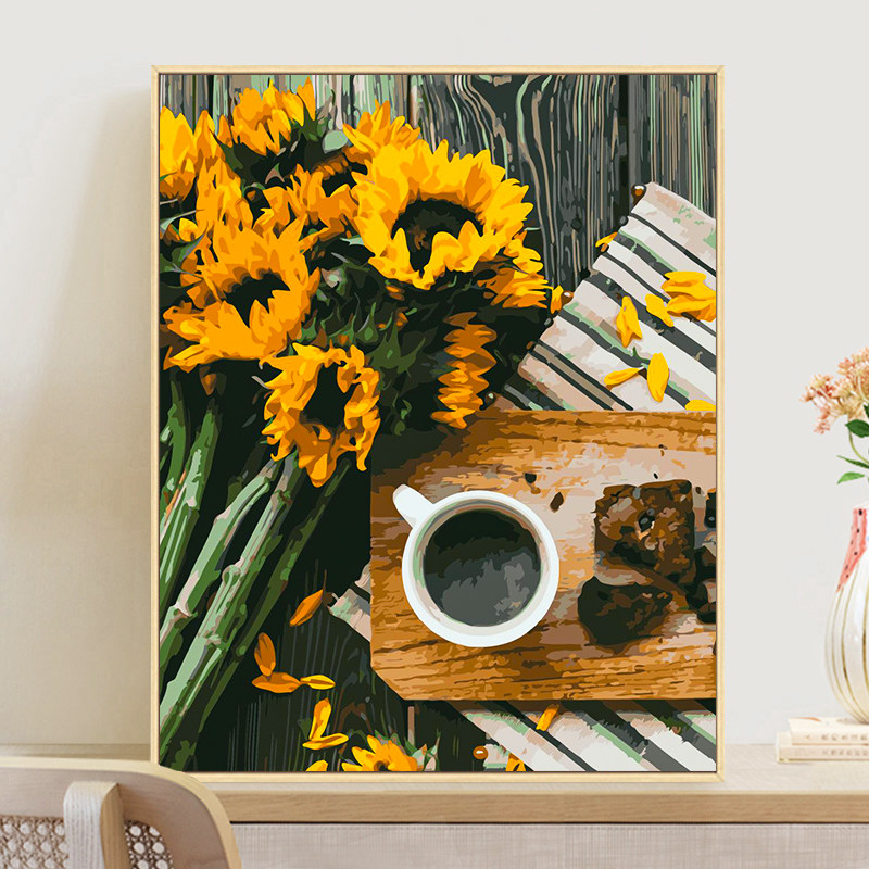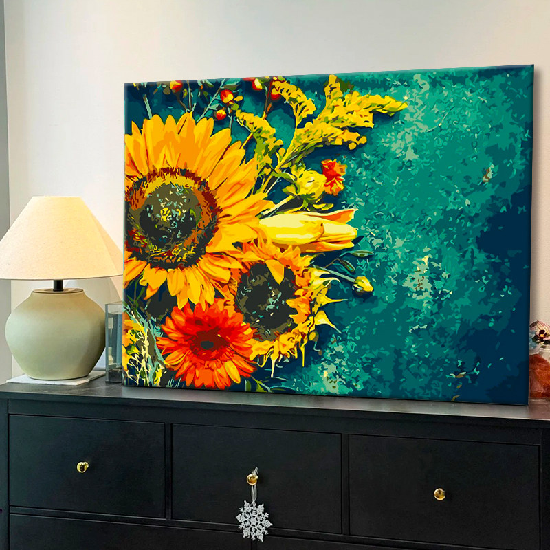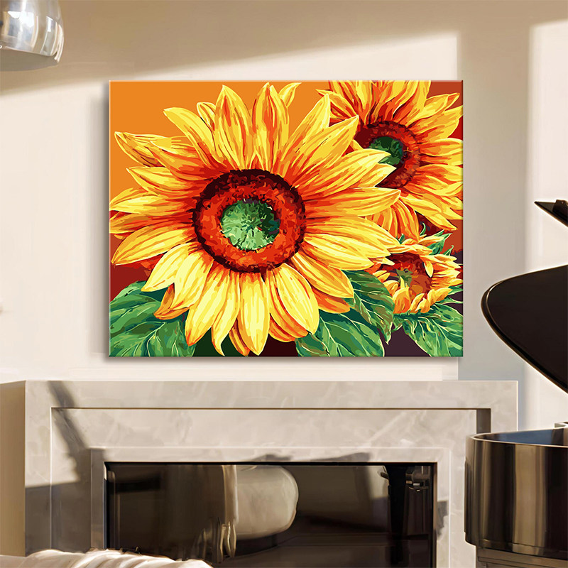 diy数字油画手工涂色填色画高级感花卉客厅大幅横版向日葵肌理画