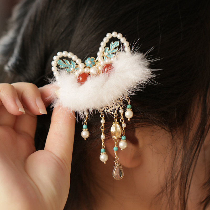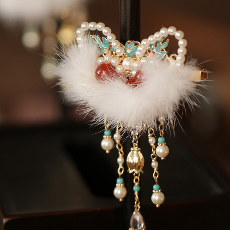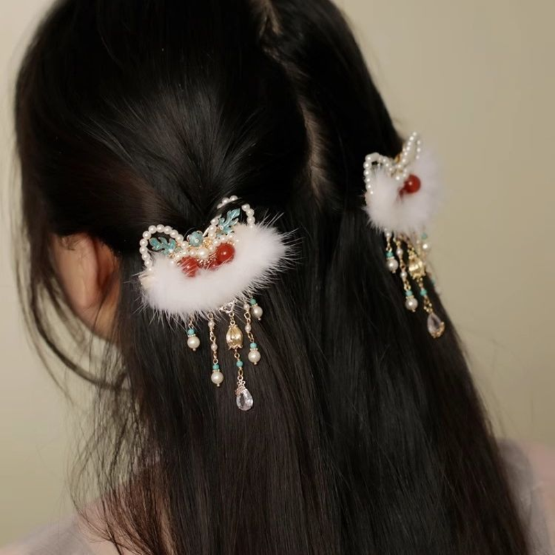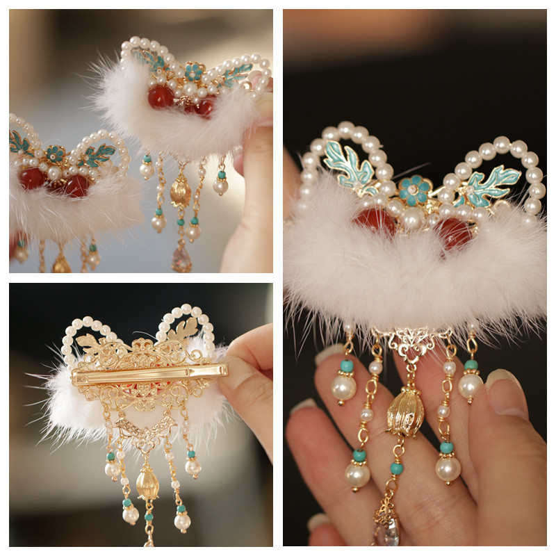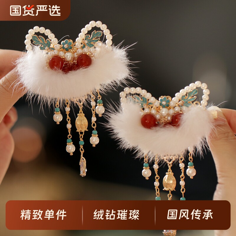 过年儿童2026新年醒狮流苏蝴蝶结发夹女童侧边刘海夹古风汉服发饰