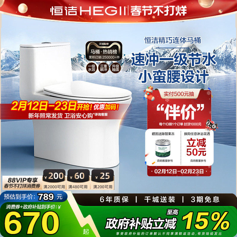 【政府补贴15%】恒洁抽水马桶节水佛山陶瓷小户型节水虹吸坐便器