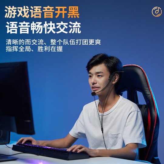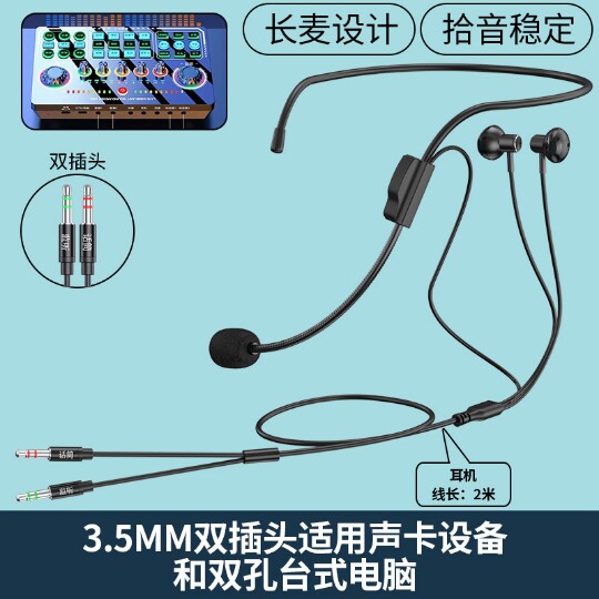 声卡专用骨架式监听耳机带麦挂耳金属重低音台式电脑一键闭麦耳塞