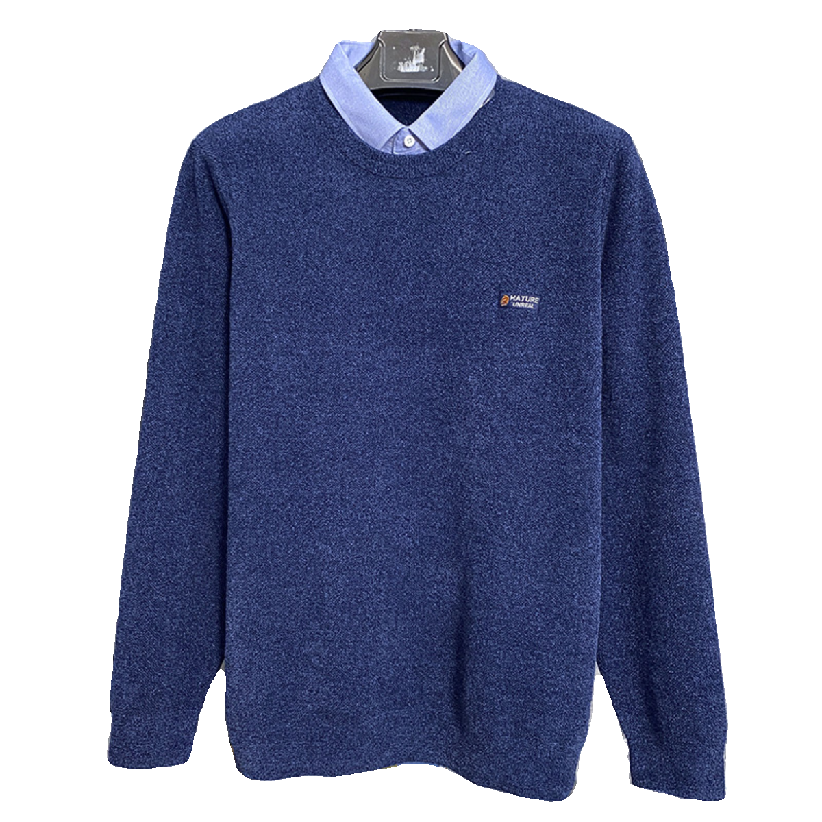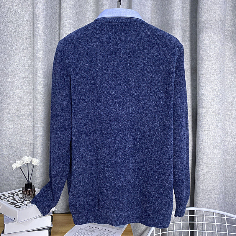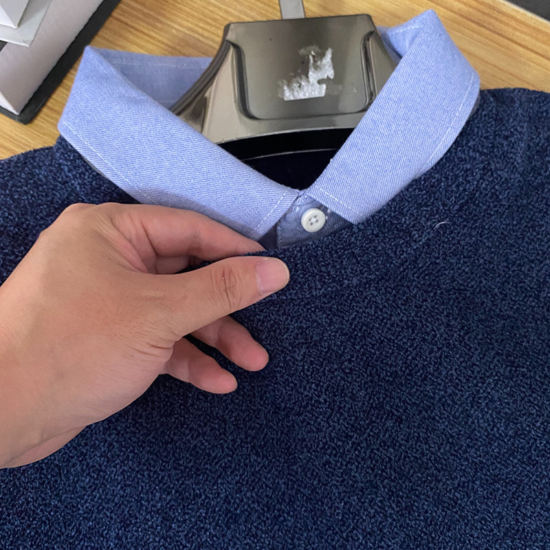 新款男士冬季毛衣温暖水柔绒纯色假两件修身加厚舒适保暖针织衫