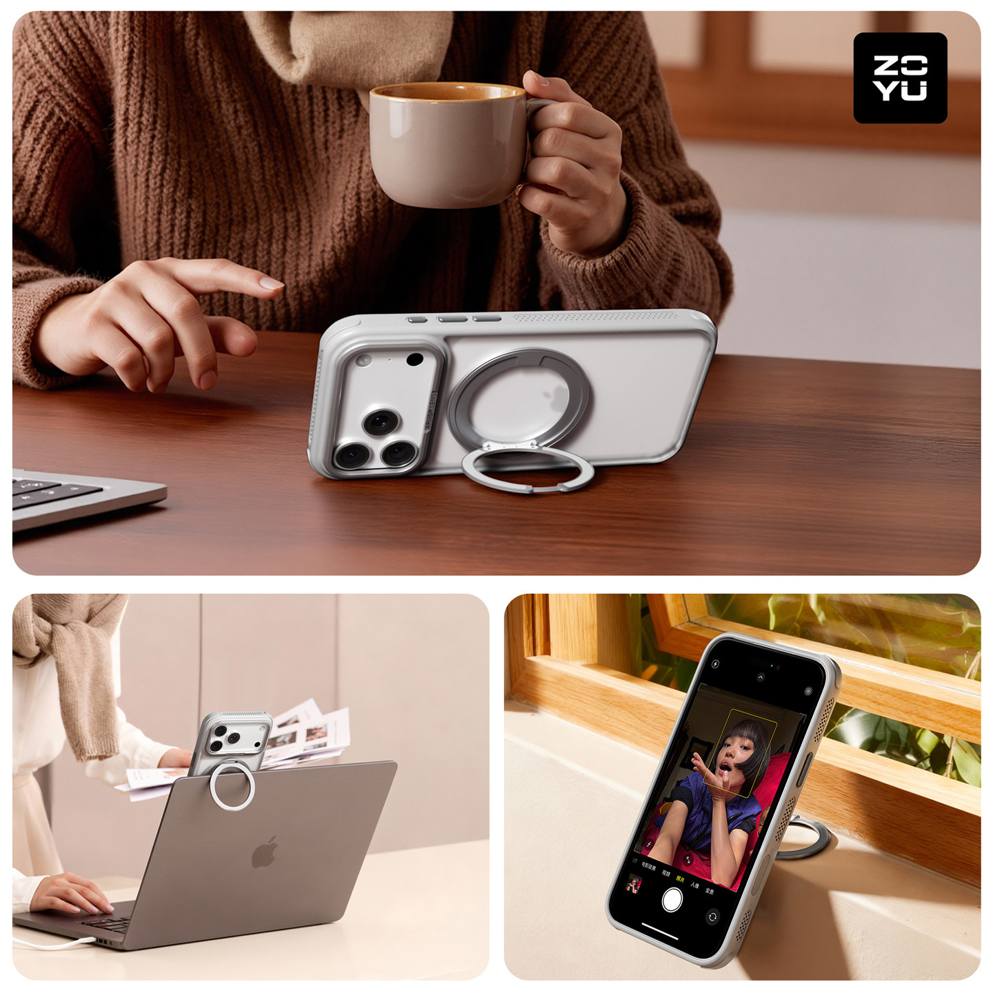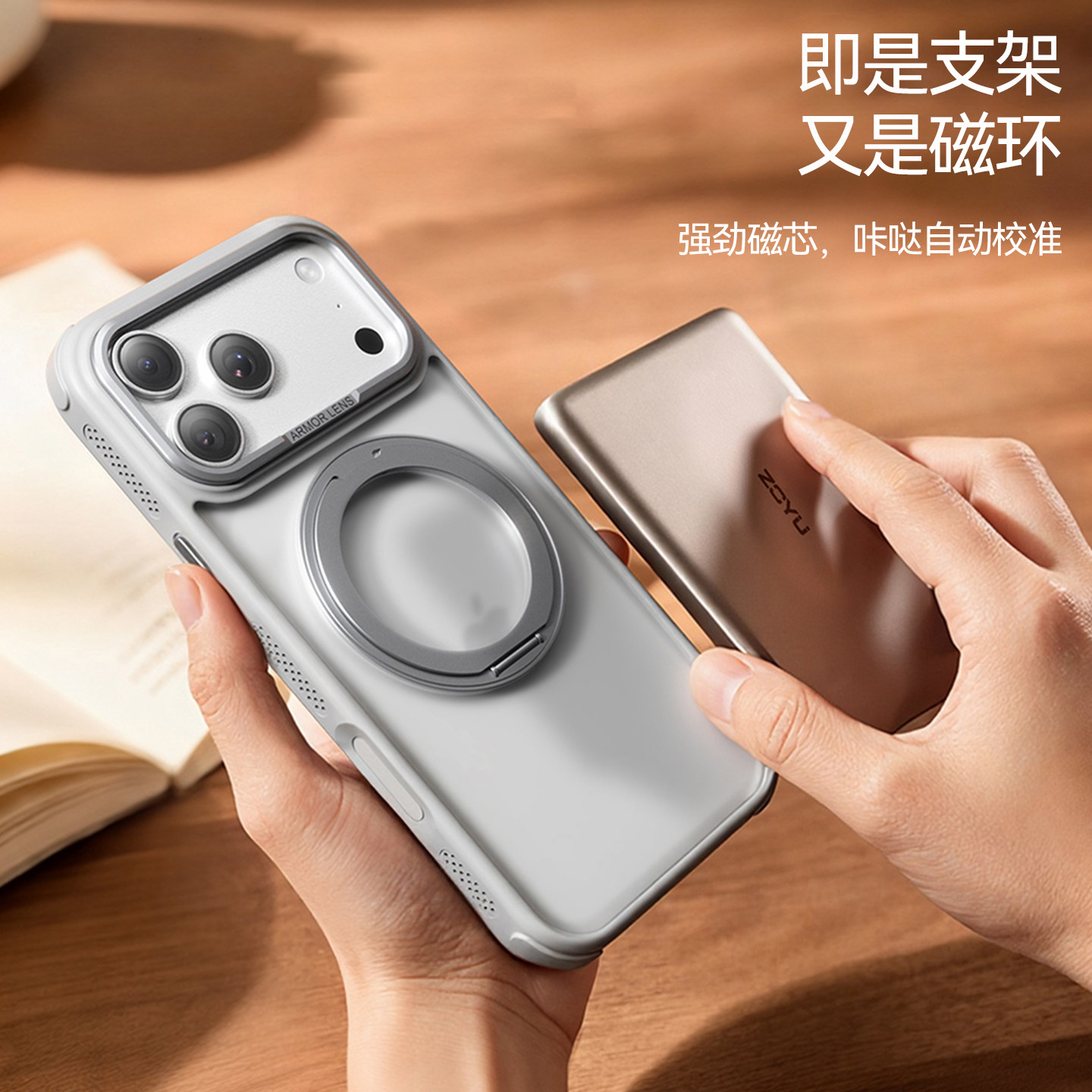 zoyu苹果17手机壳iPhone16pro支点壳磁吸360°旋转air机械阻尼横竖屏支架promax保护套防弯抗摔磨砂软包半透