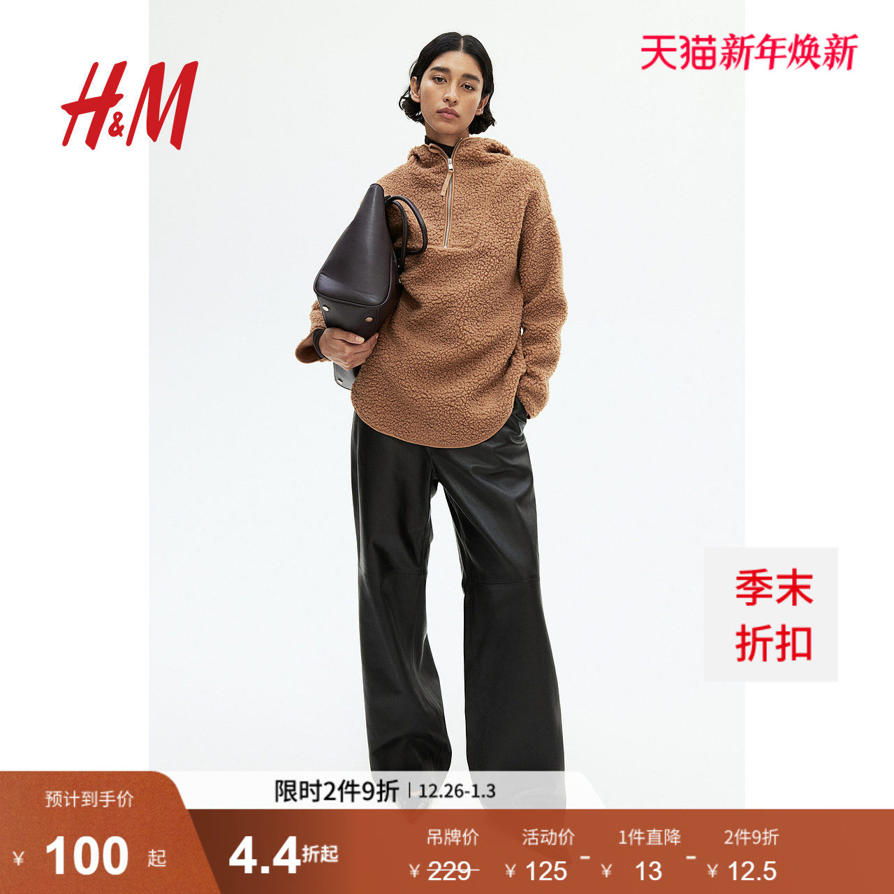 HM女装绒衫冬季简约宽松舒适连帽衫卫衣1089839