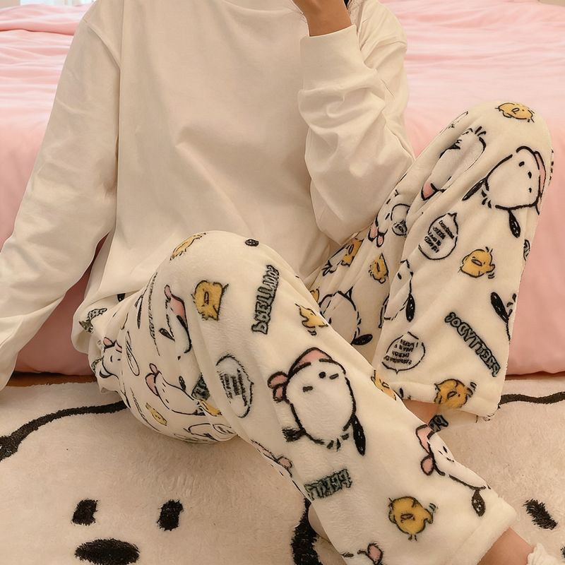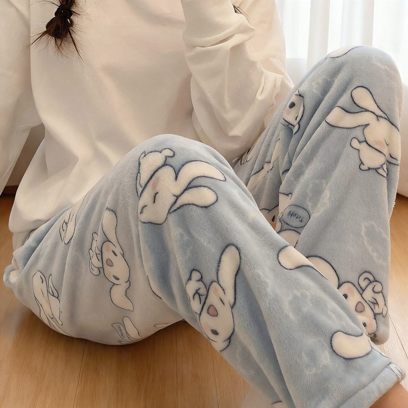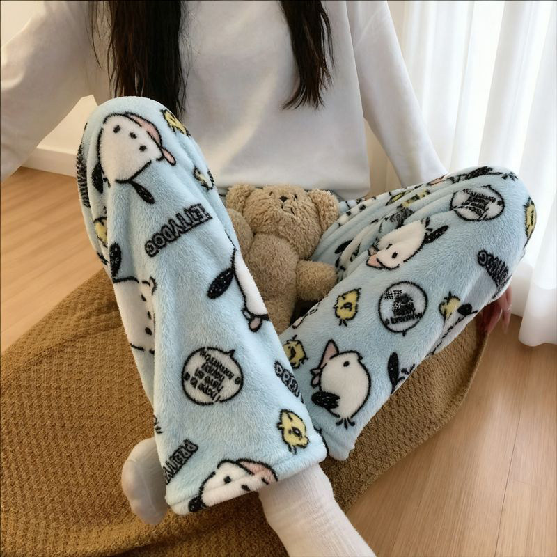 珊瑚绒睡裤女款秋冬季加厚加绒可爱法兰绒家居服冬天学生保暖长裤