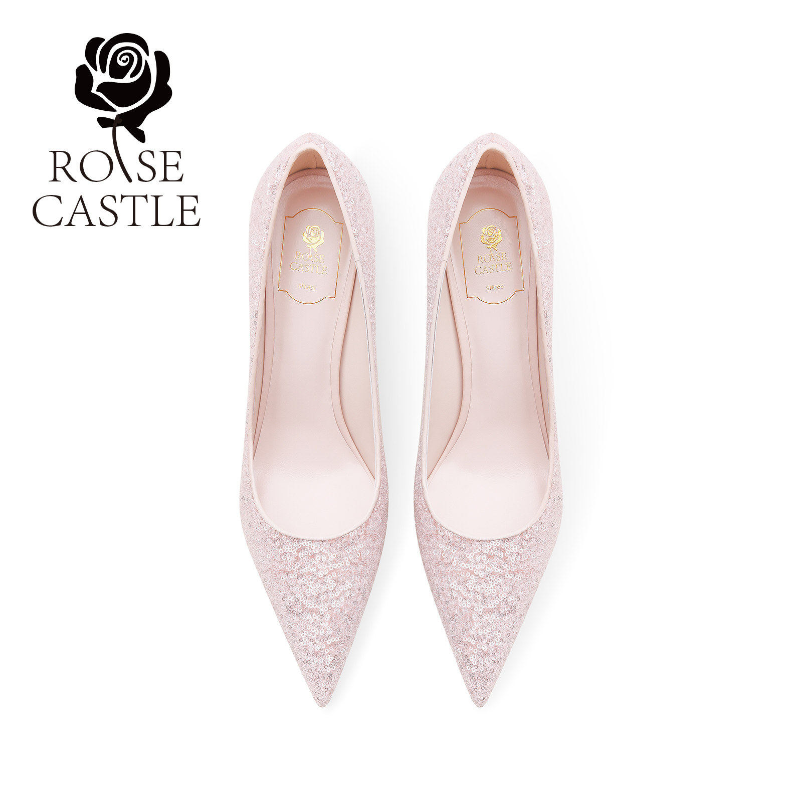 婚鞋女rosecastle2025新款主纱鞋日常可穿舒适新娘单鞋粉色旗袍鞋