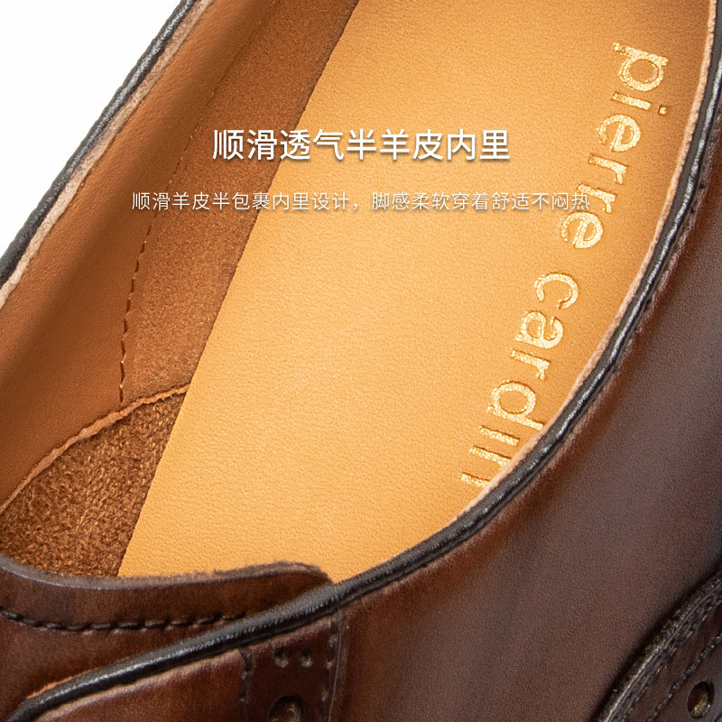 Pierre Cardin/皮尔卡丹25男鞋头层牛皮德比鞋真皮轻底休闲皮鞋