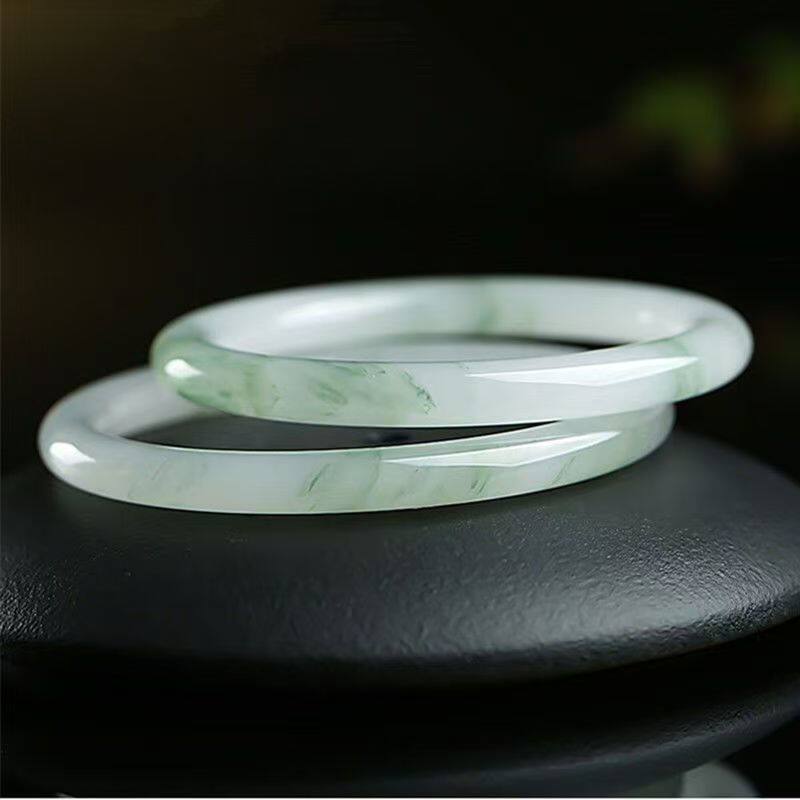爆款仿天山翠手镯女款细条玉镯冰透飘花款细圆条镯子紫罗兰圈口