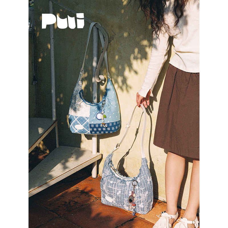 Puui原创牛仔流浪hobo包斜挎包2026新款背包通勤春夏大容量单肩包