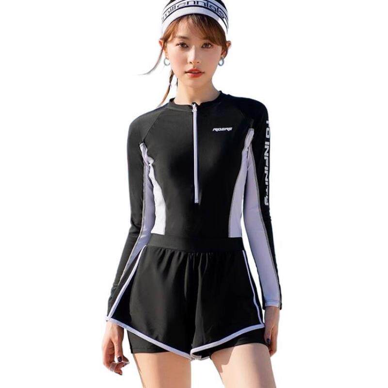 连身泳衣女款2026年新款长袖高级感微胖女孩遮肉显瘦泡温泉游泳衣