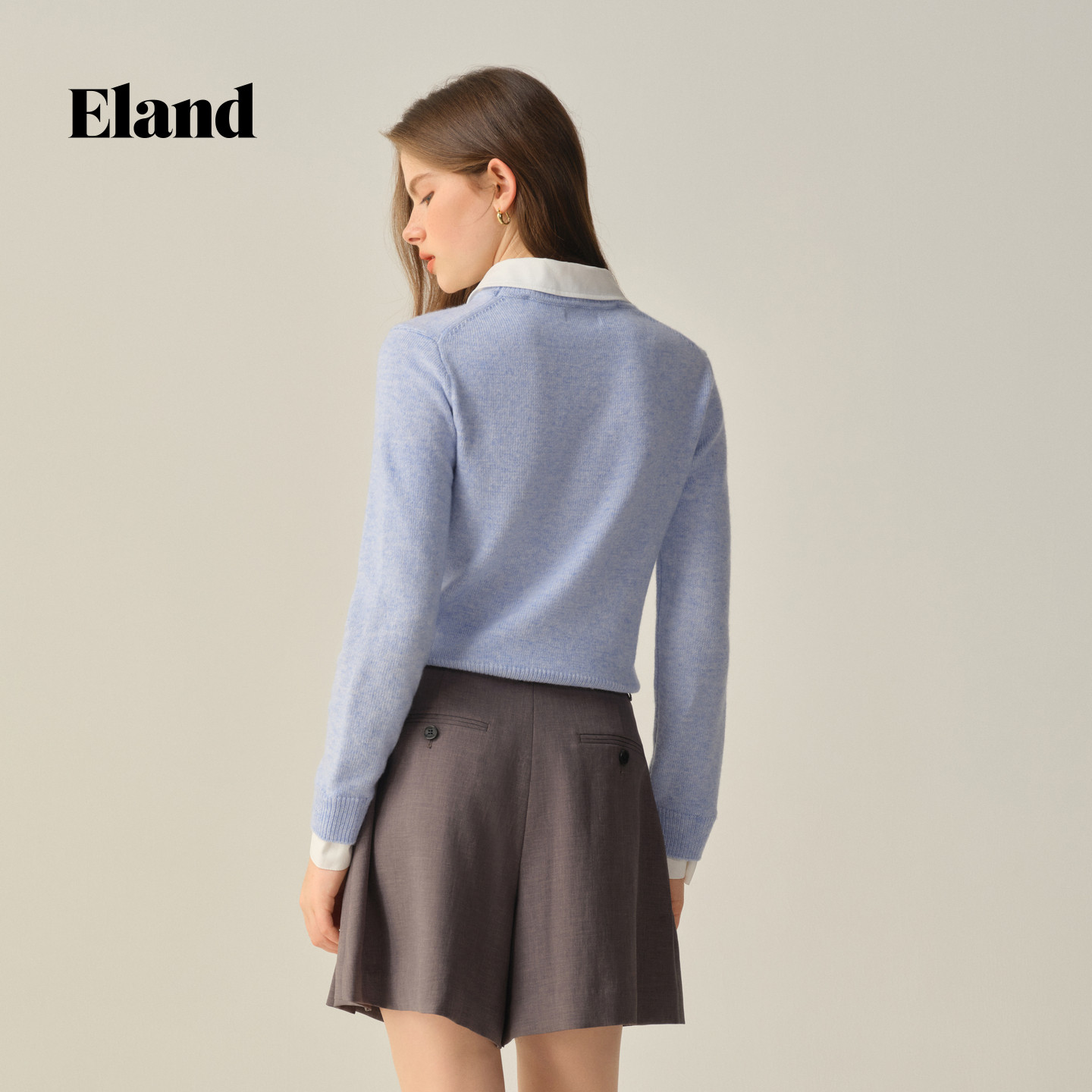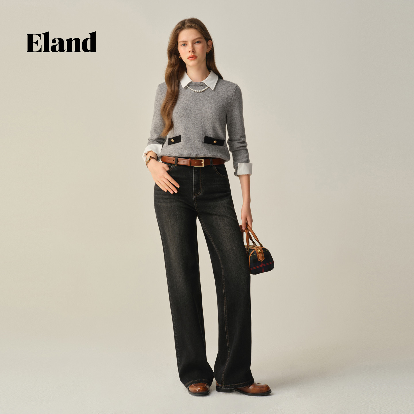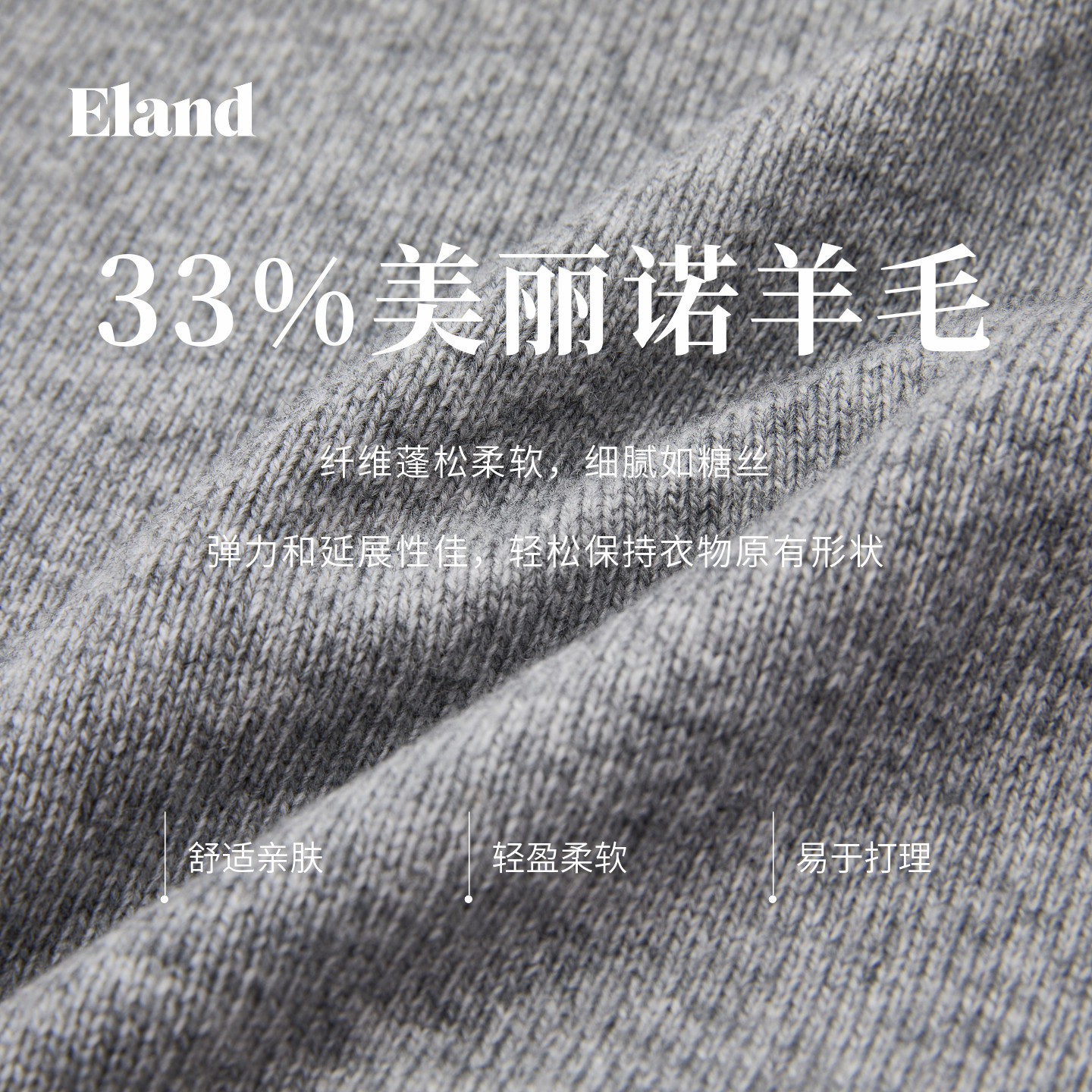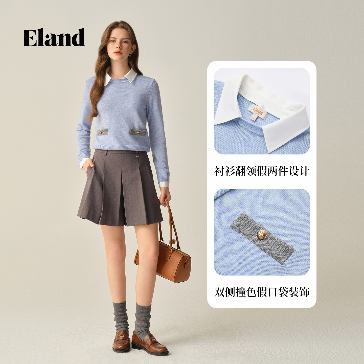 【美丽诺羊毛】ELand衣恋毛衣女撞色口袋翻领针织衫2025冬季新款