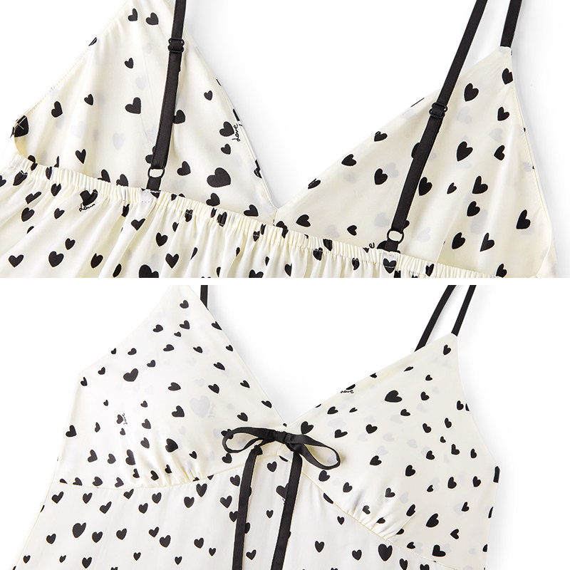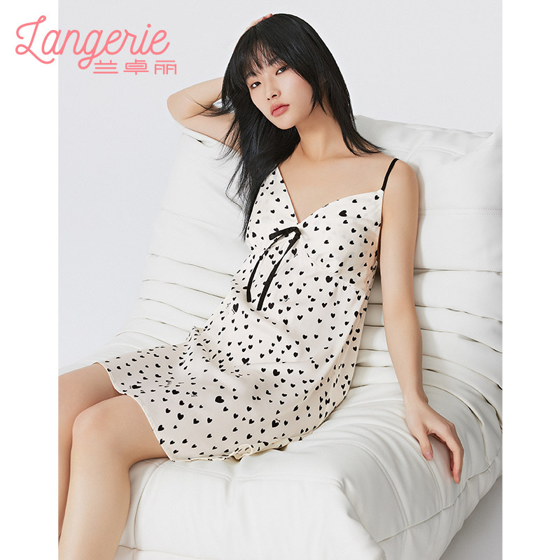 兰卓丽吊带睡裙女性感深V睡衣舒适亲肤冰雪丝爱心印花家居服夏季