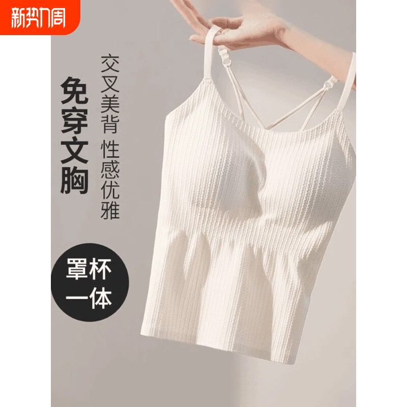 吊带背心女2026新款内搭美背带胸垫文胸一体白色无袖上衣春夏外穿