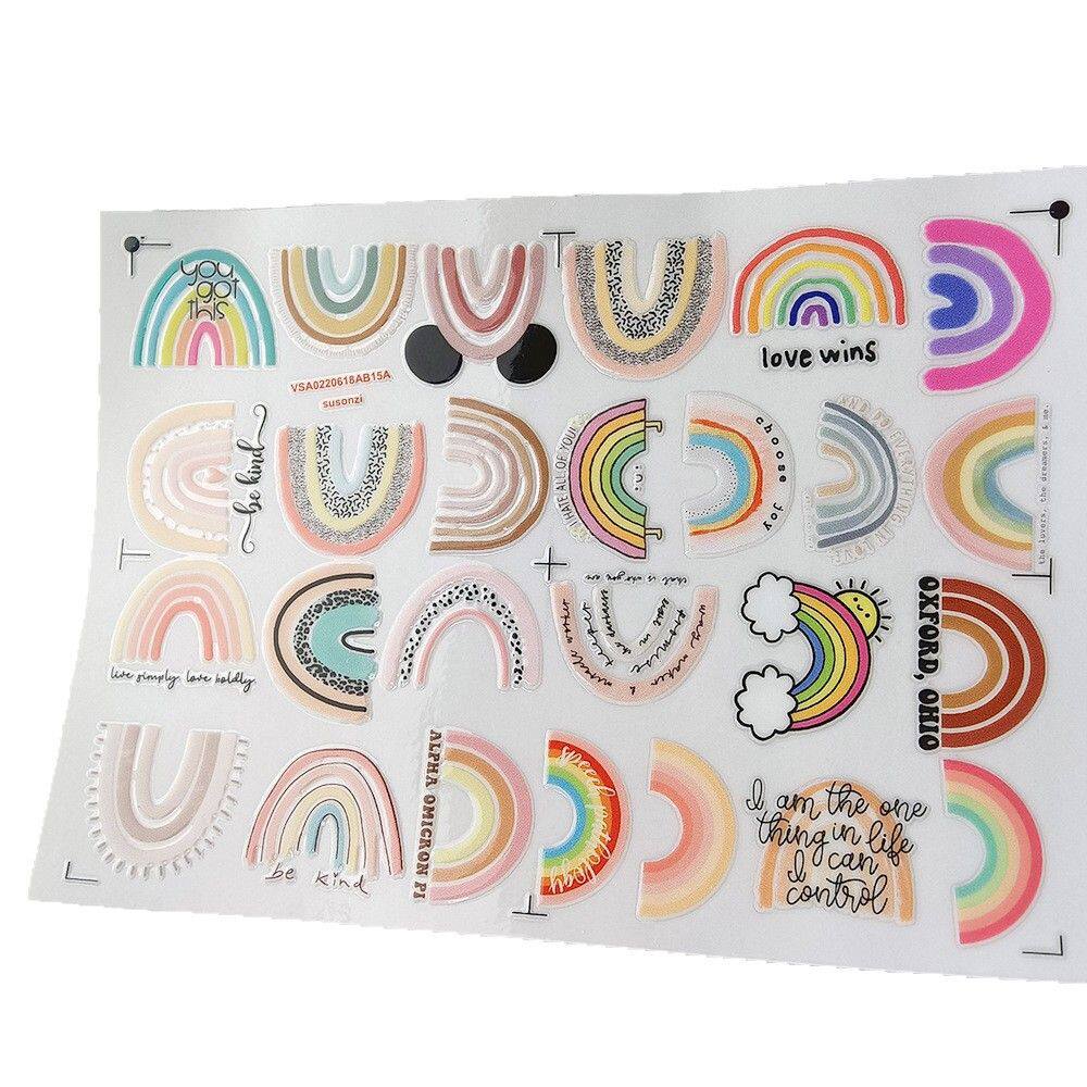 卡通彩虹桥镂空立体防水笔牙刷水杯图装饰贴纸UV转印贴水晶标定制