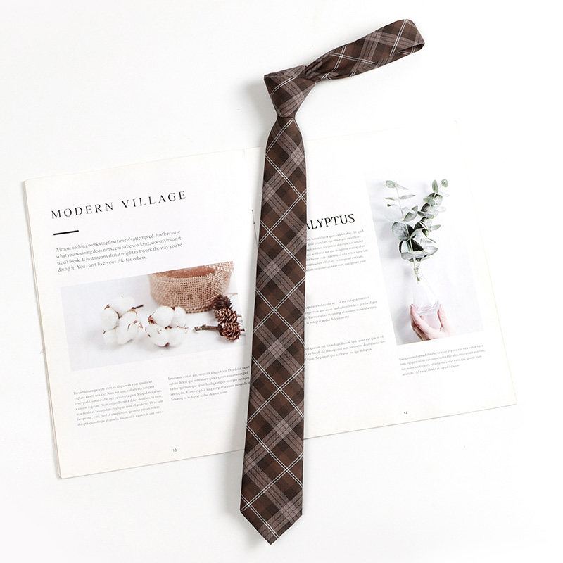 棕色复古咖啡色格子领带女懒人免打日系学院风jk小领带领结手打男
