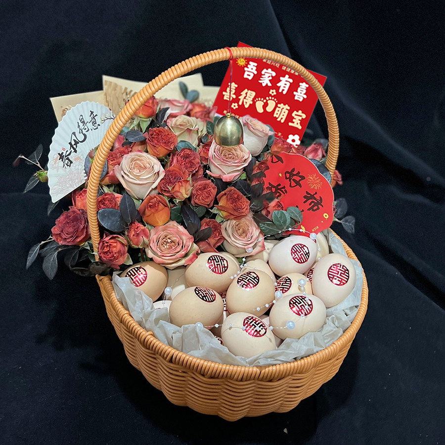 孕妇diy节日礼品月子篮节日礼品仿藤篮仿藤手提花篮送产妇月子篮
