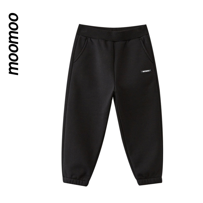 moomoo童装男童基础加绒针织长裤摇粒绒保暖休闲百搭学院下装秋冬