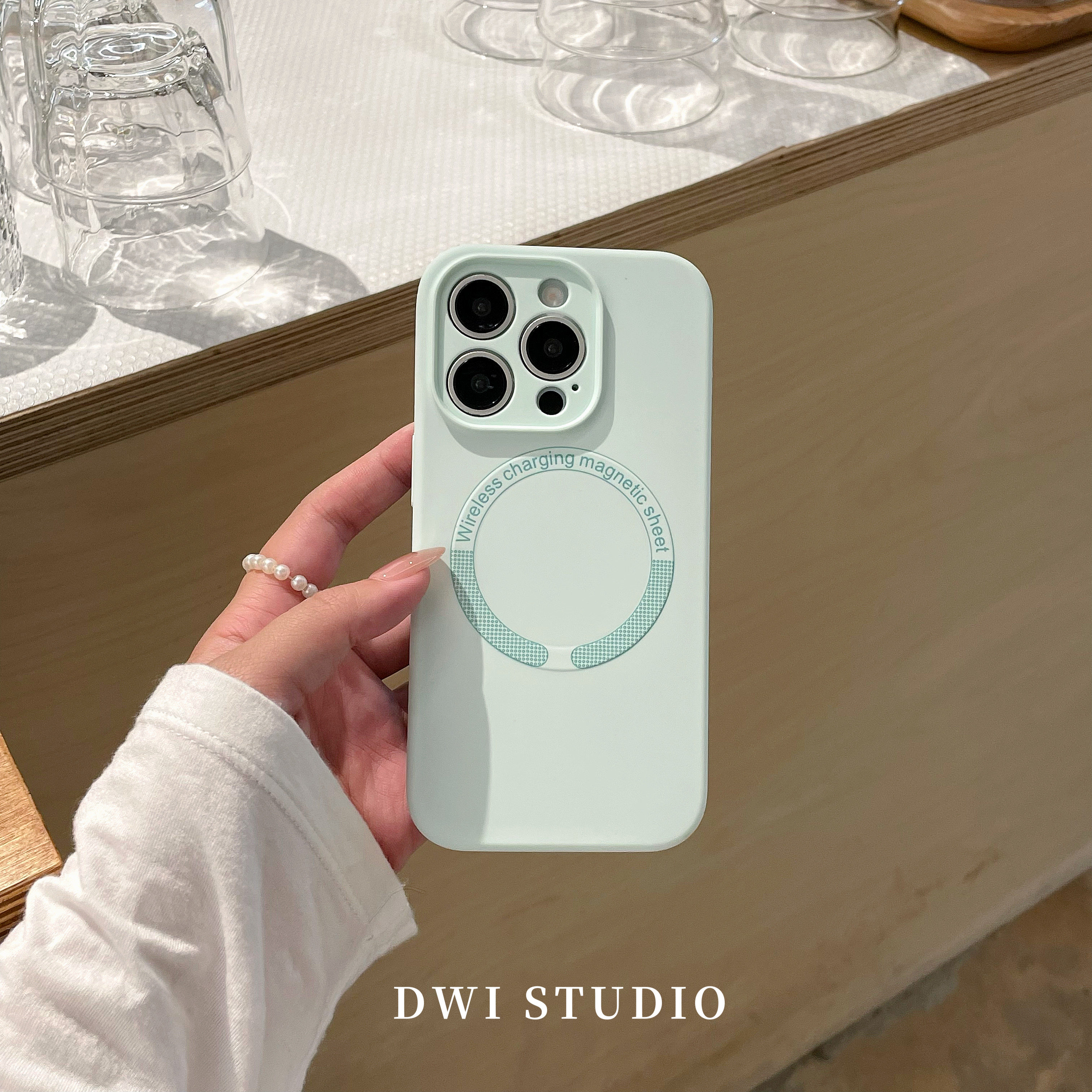 DWI STUDIO薄荷绿青苹果磁吸手机壳16promax/14适用苹果15pro/17promax/13新款iPhone16液态硅胶壳17pro