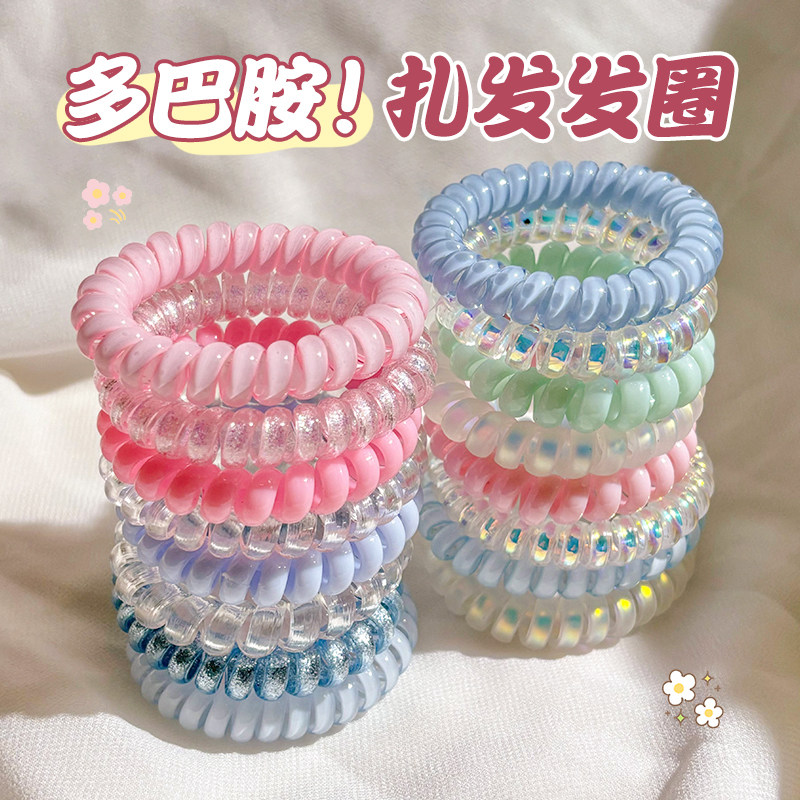 果冻色电话线发圈女高弹力皮筋发绳高级感耐用无痕头绳头饰多规格