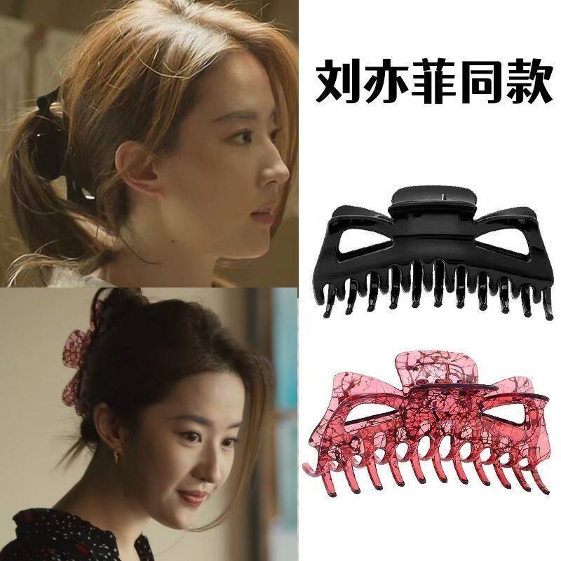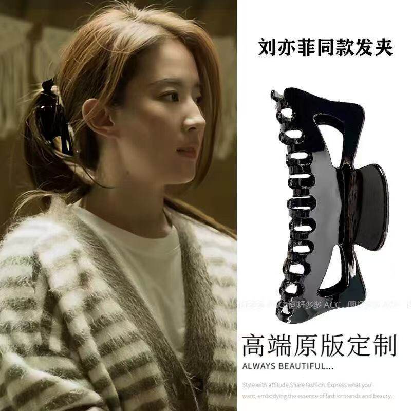 新款玫瑰的故事刘亦菲同款酒红色抓夹大号鲨鱼加简约发夹高级感