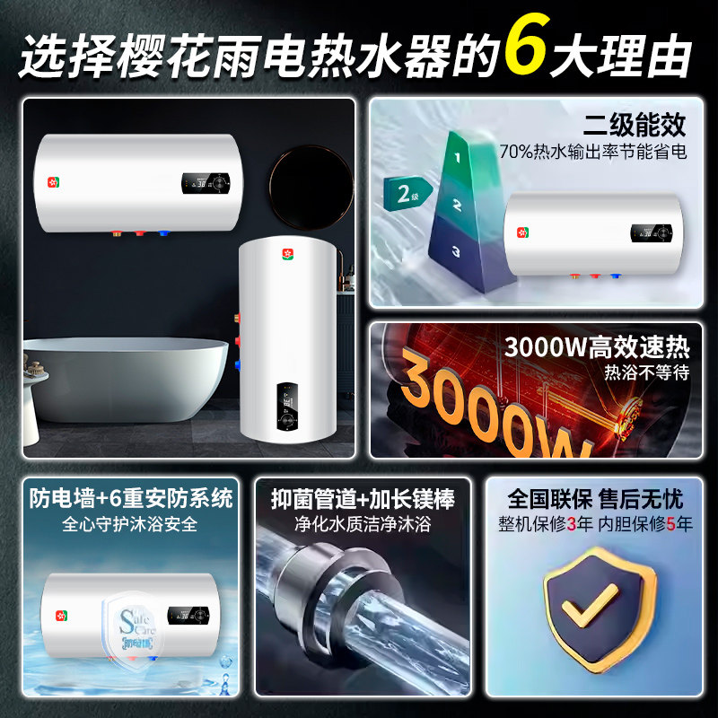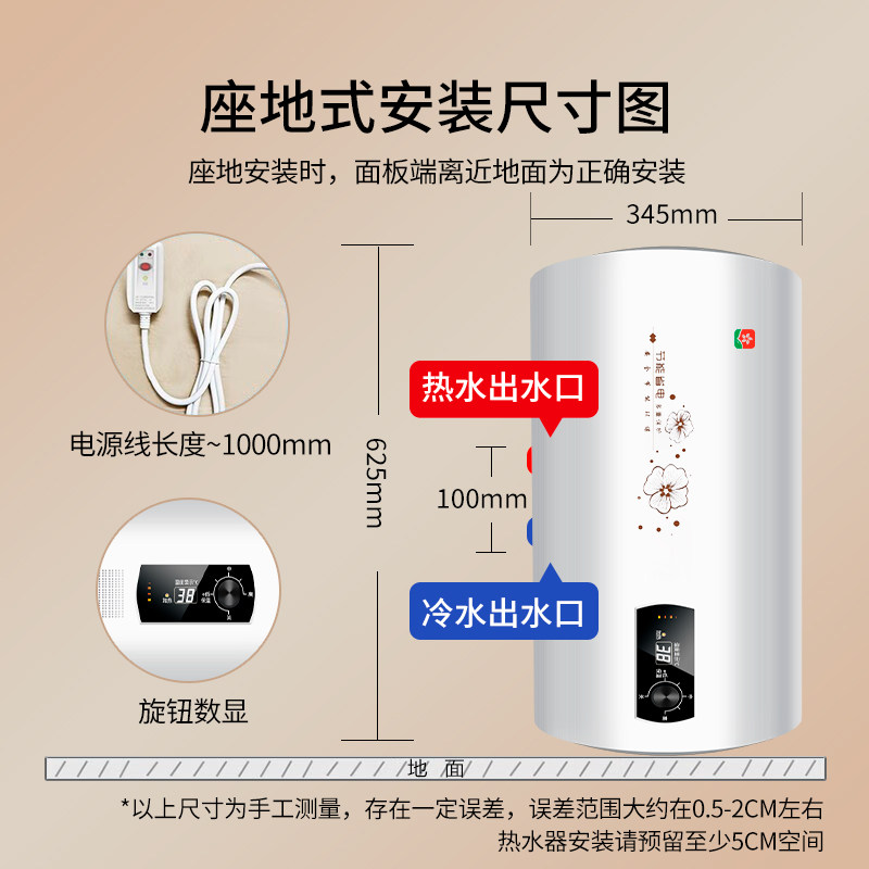 【免打孔】樱花雨家用电热水器立式落地式省电挂墙速热储水式洗澡