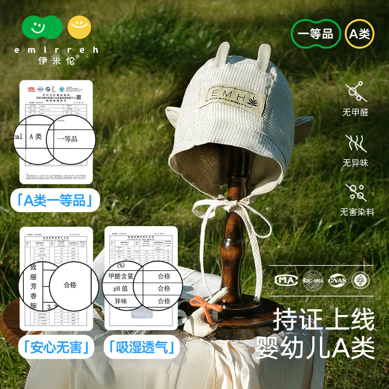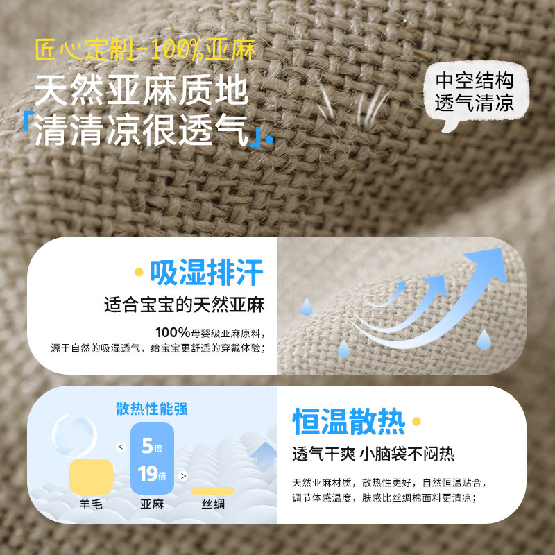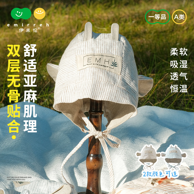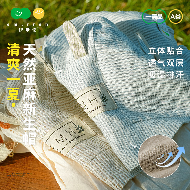 伊米伦纯亚麻新生儿帽子防晒帽可爱婴儿帽子宝宝遮阳帽轻薄透气夏
