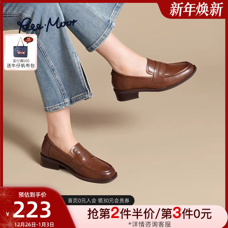REEMOOR睿慕2025秋季新款英伦风乐福鞋软底皮鞋厚底增高单鞋女鞋