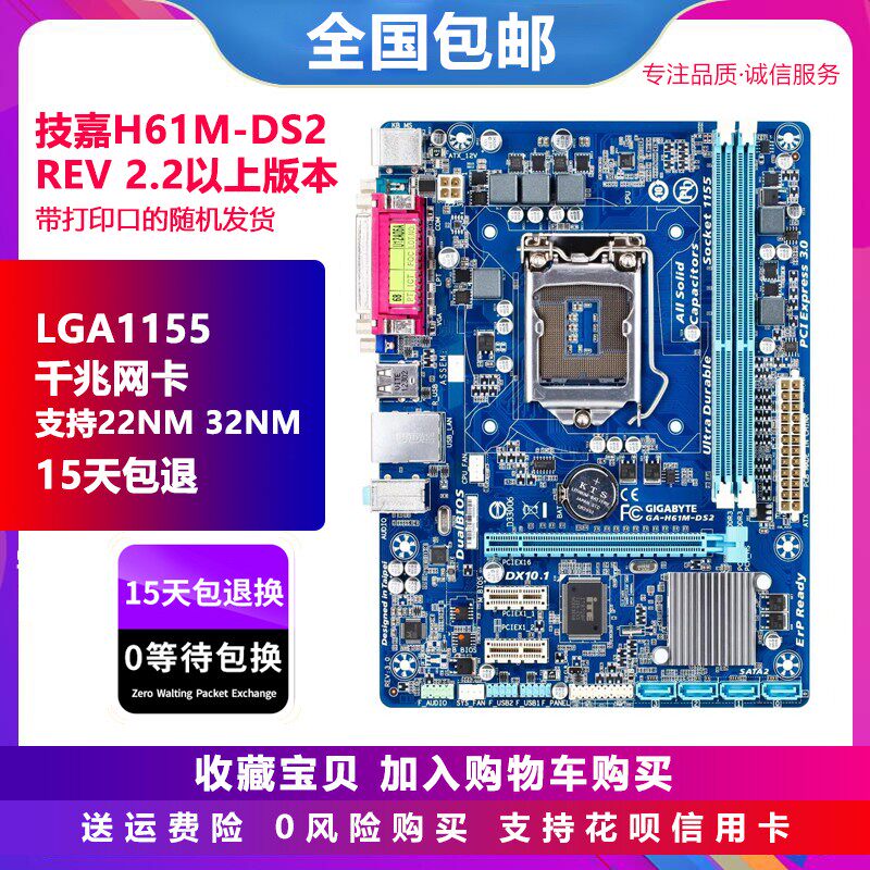 一年包换新 h61m-ds2 s1 s2ph h61/b75 1155主板i5技嘉台式机主板