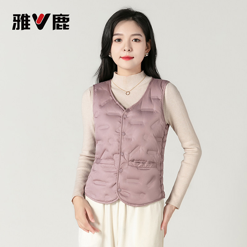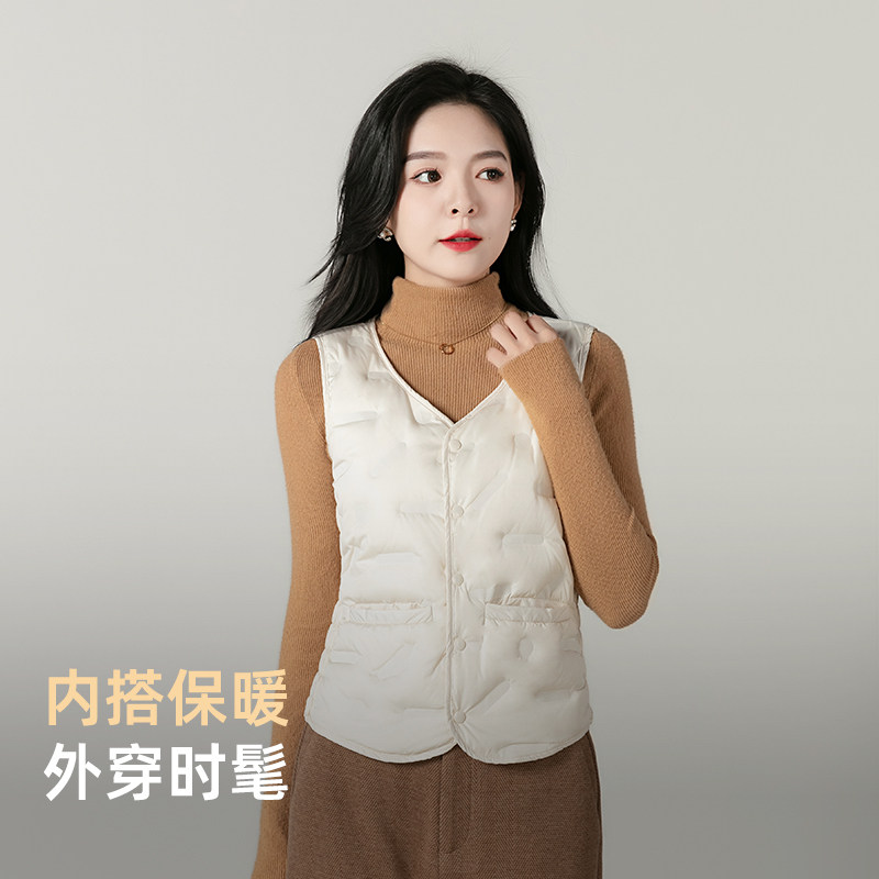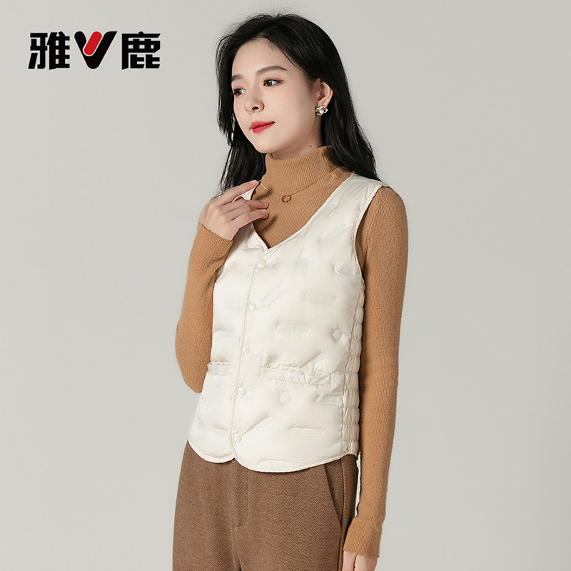 鸭鸭轻薄羽绒服马甲女V领反季基础修身背心休闲蓬松鸭绒马夹外套X