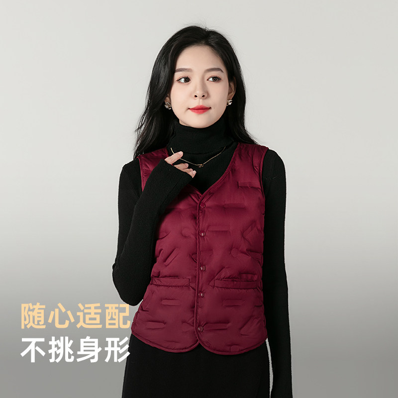 2025秋冬新款无领轻薄圆领羽绒马甲女内穿薄款内胆羽绒服背心坎肩