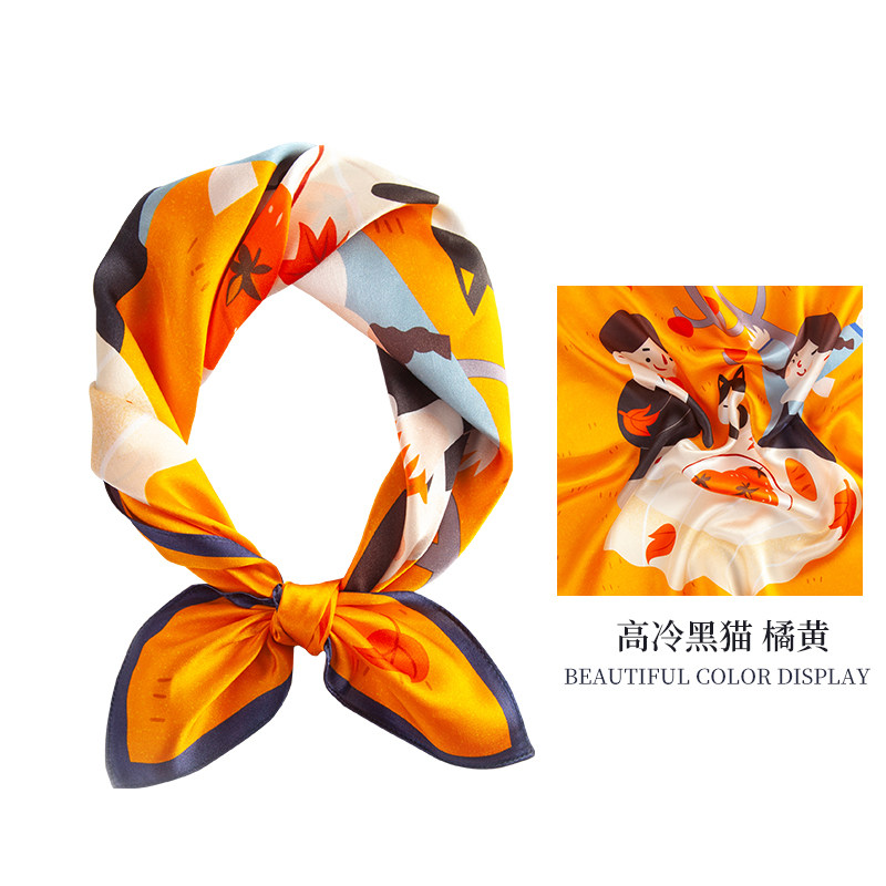 防风护颈婴儿丝巾女杭州丝绸桑蚕丝真丝宝宝小方巾儿童款卡通可爱