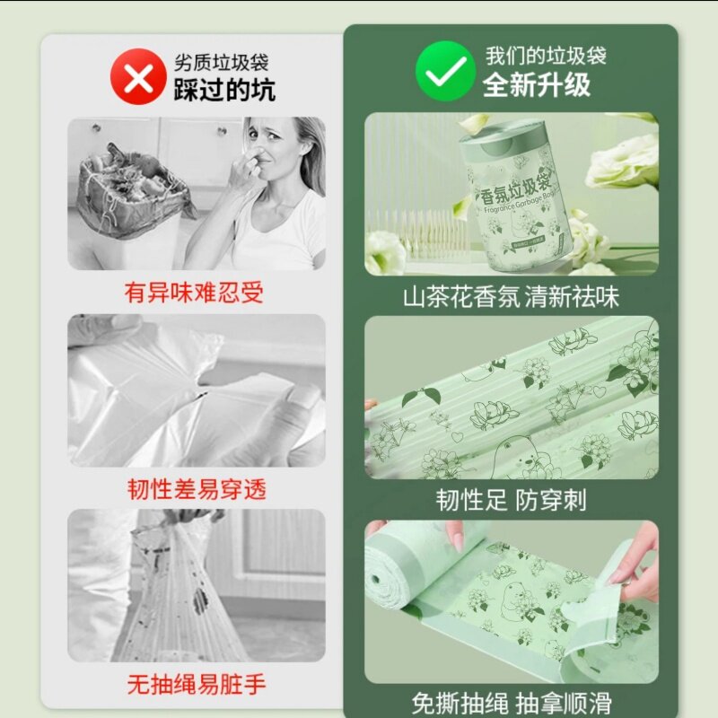 山茶花香氛垃圾袋加厚家用手提式大号抽绳免撕实惠装厨房超大宿舍